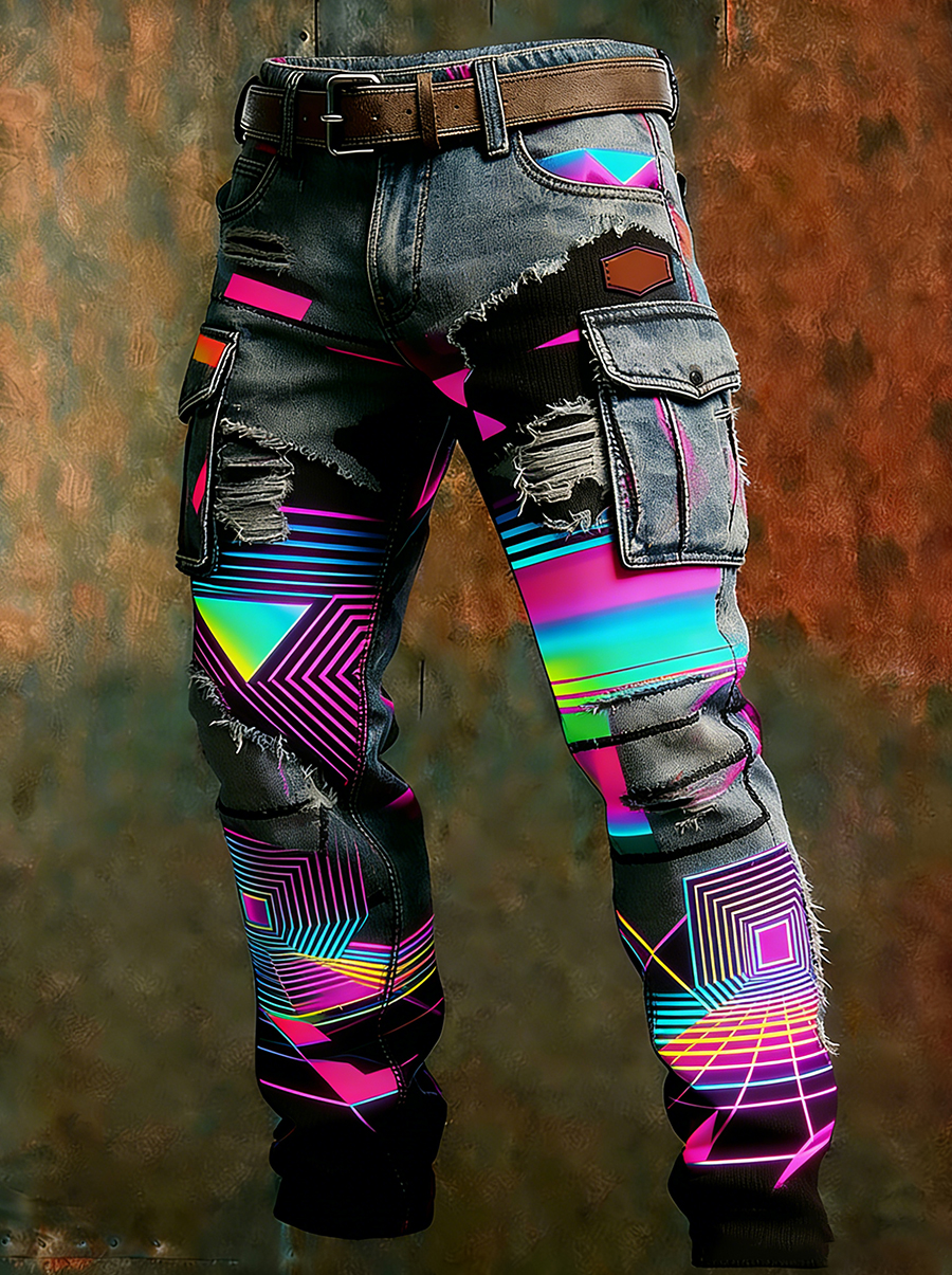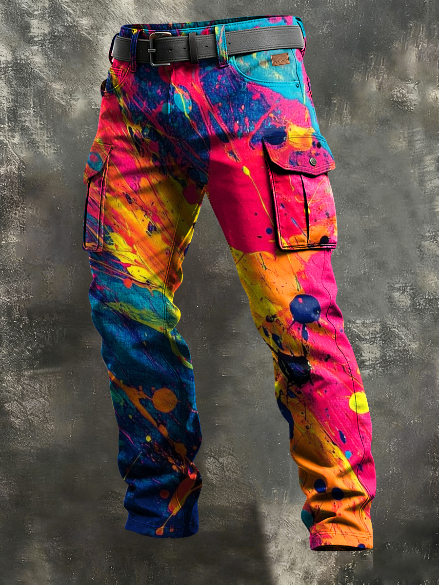 Men's Retro Vacation Business Psychedelic Art Print Casual Workwear Trousers