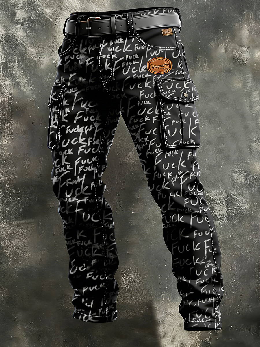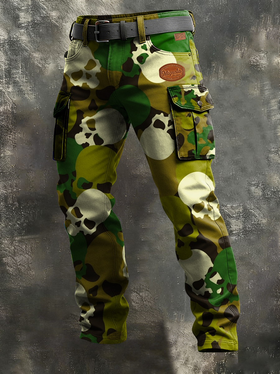 Men's Vintage Business Skull Print Retro Art Casual Workwear Trousers