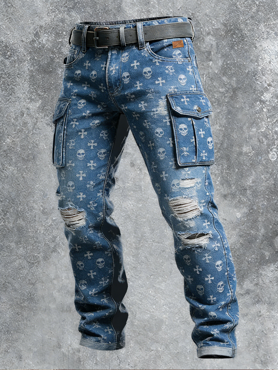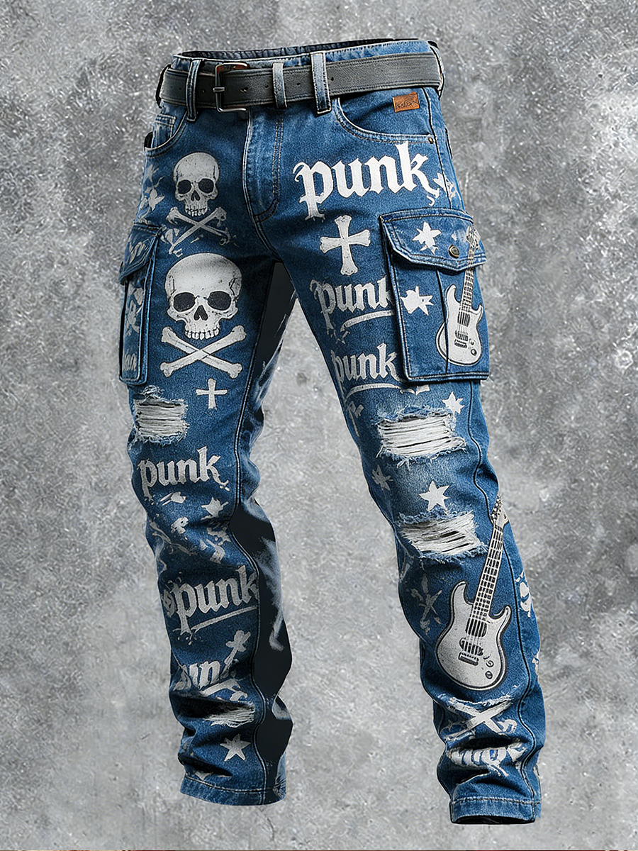 Men's Retro Vacation Business Punk Skull Art Print Casual Workwear Trousers