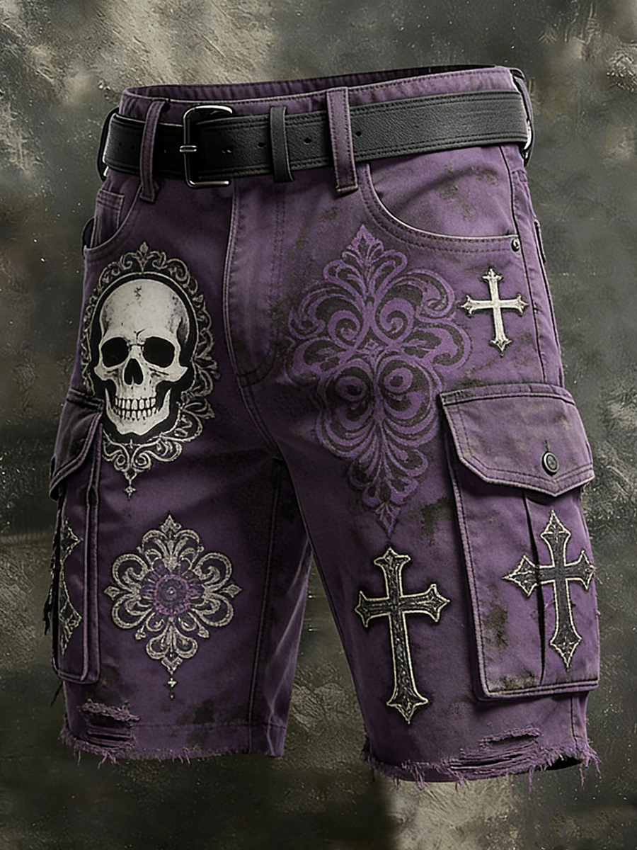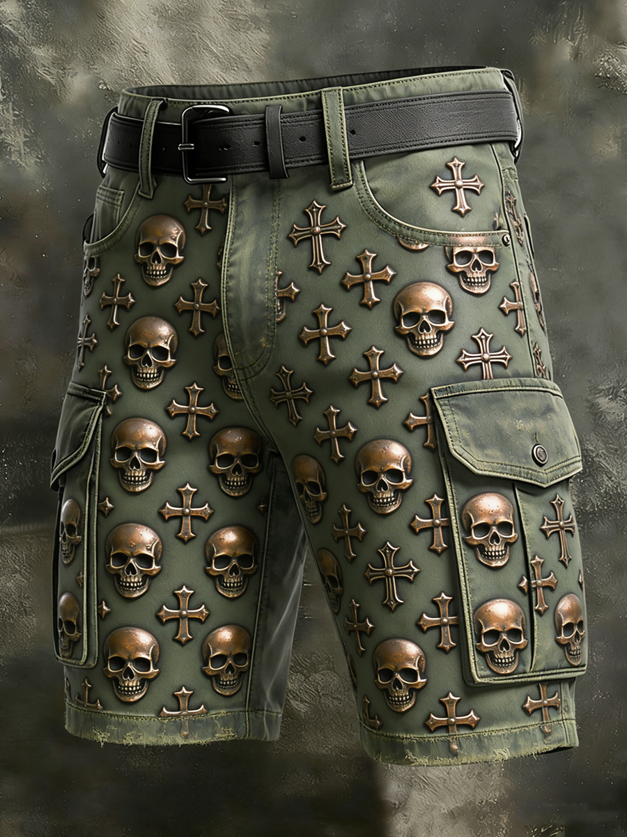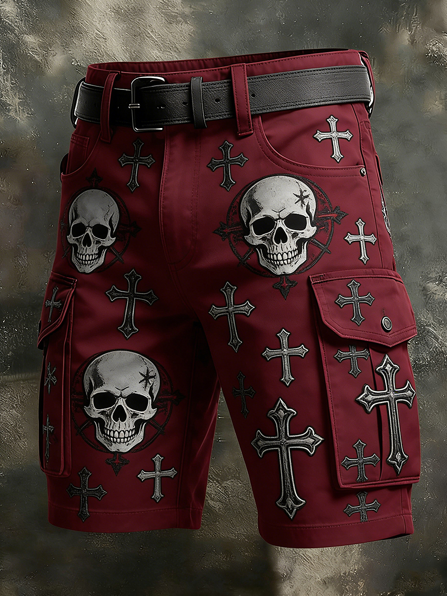 Men's Retro Vacation Business Gothic Skull Art Print Casual Shorts