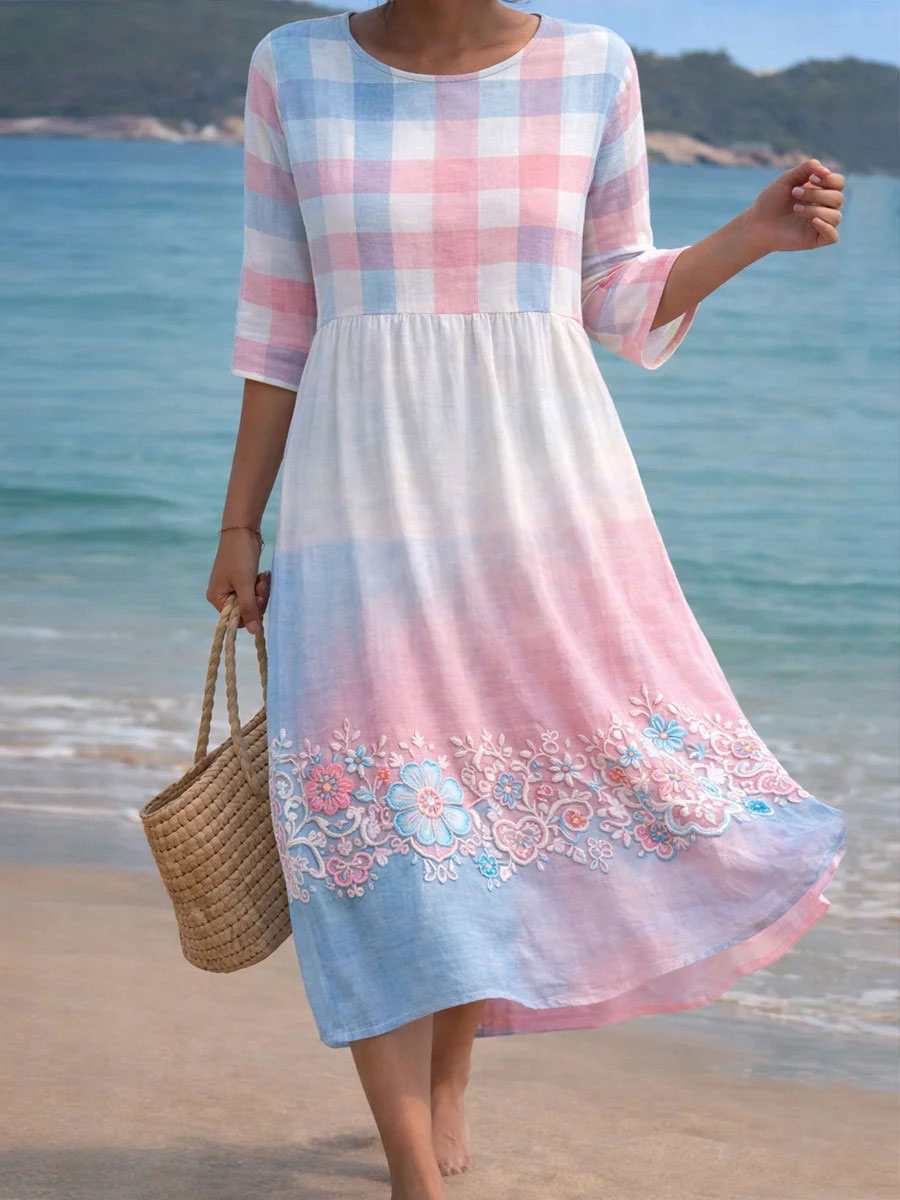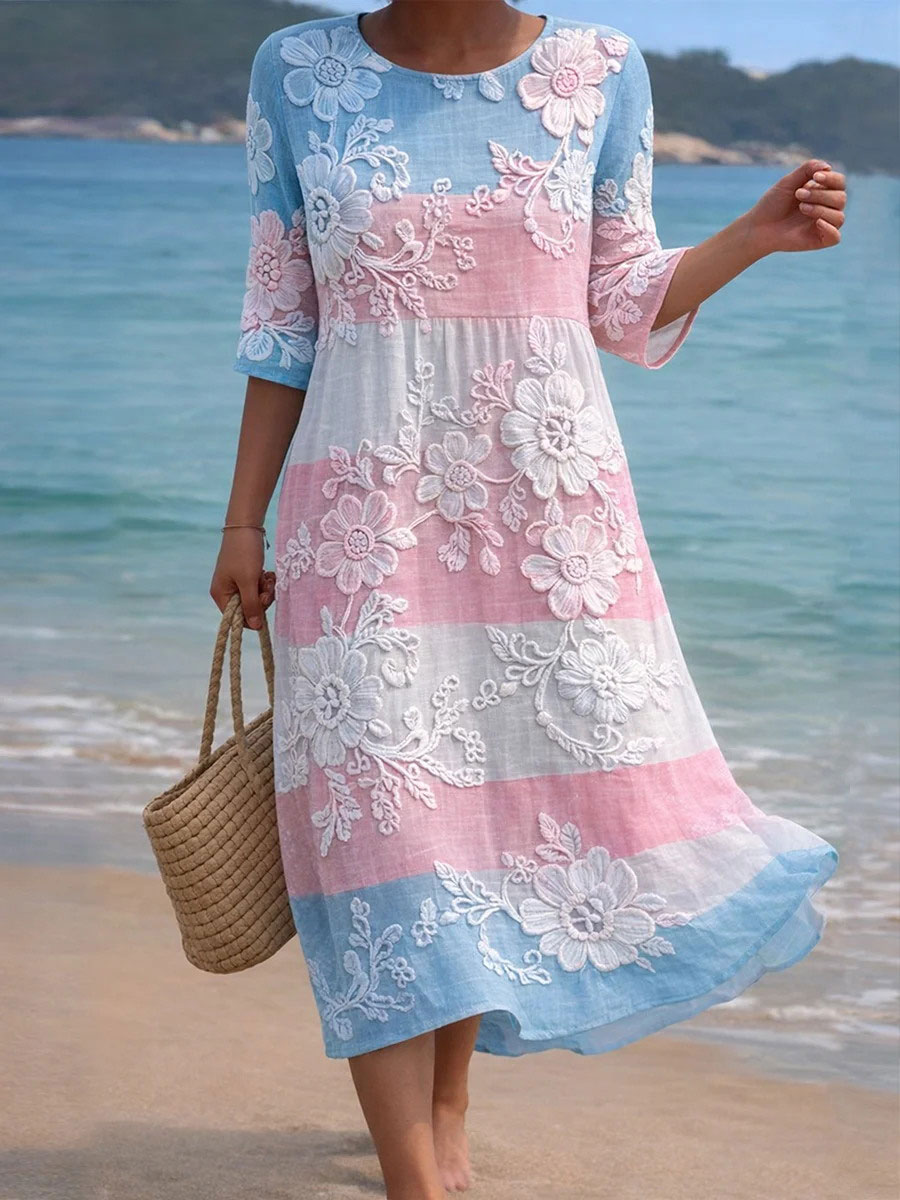 Women's Pink and Blue Floral Print Casual Dress