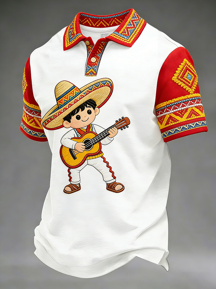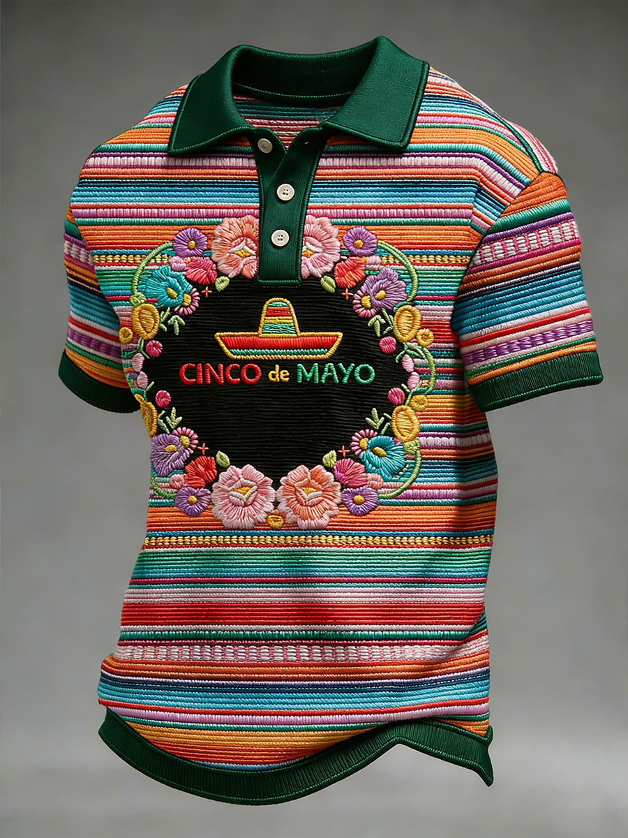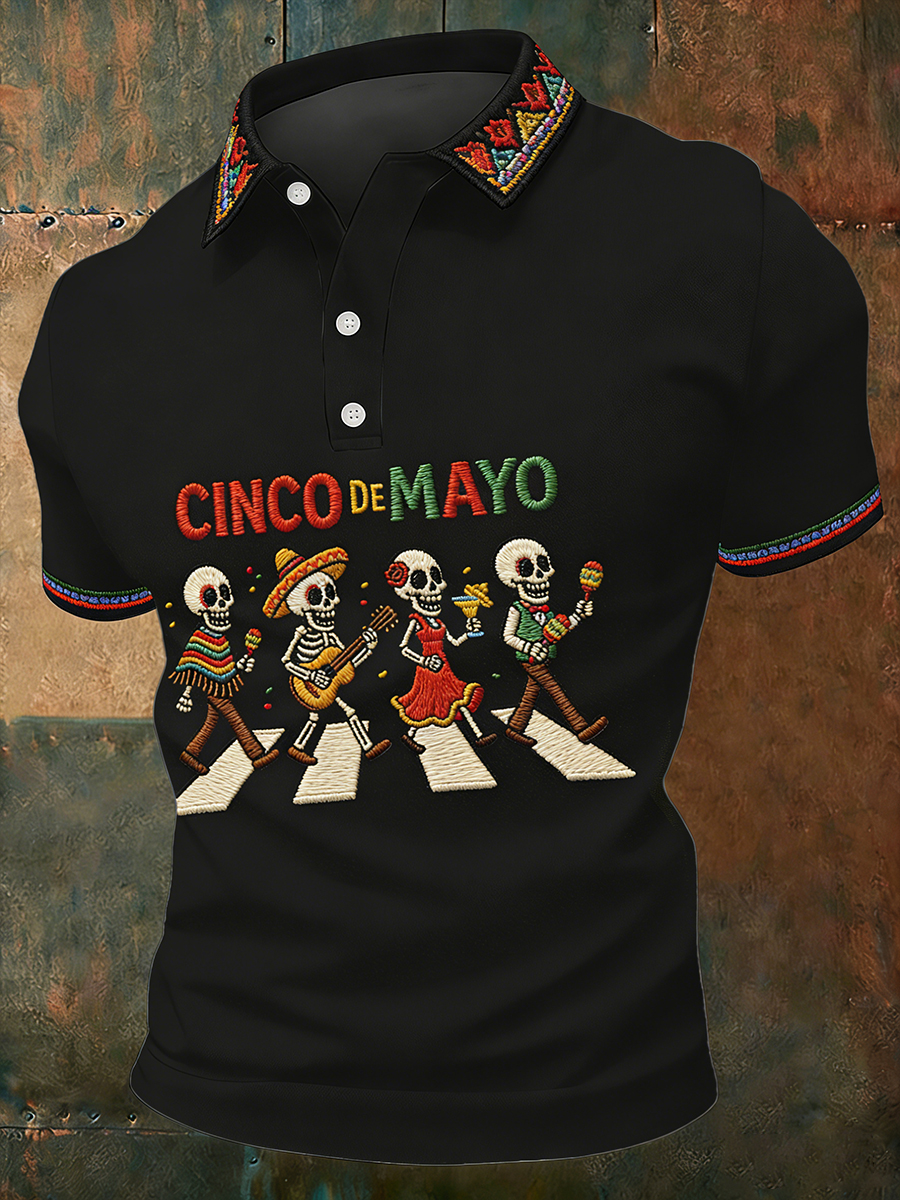 Retro Mexican Cinco de Mayo Art Print Casual Polo Shirt
