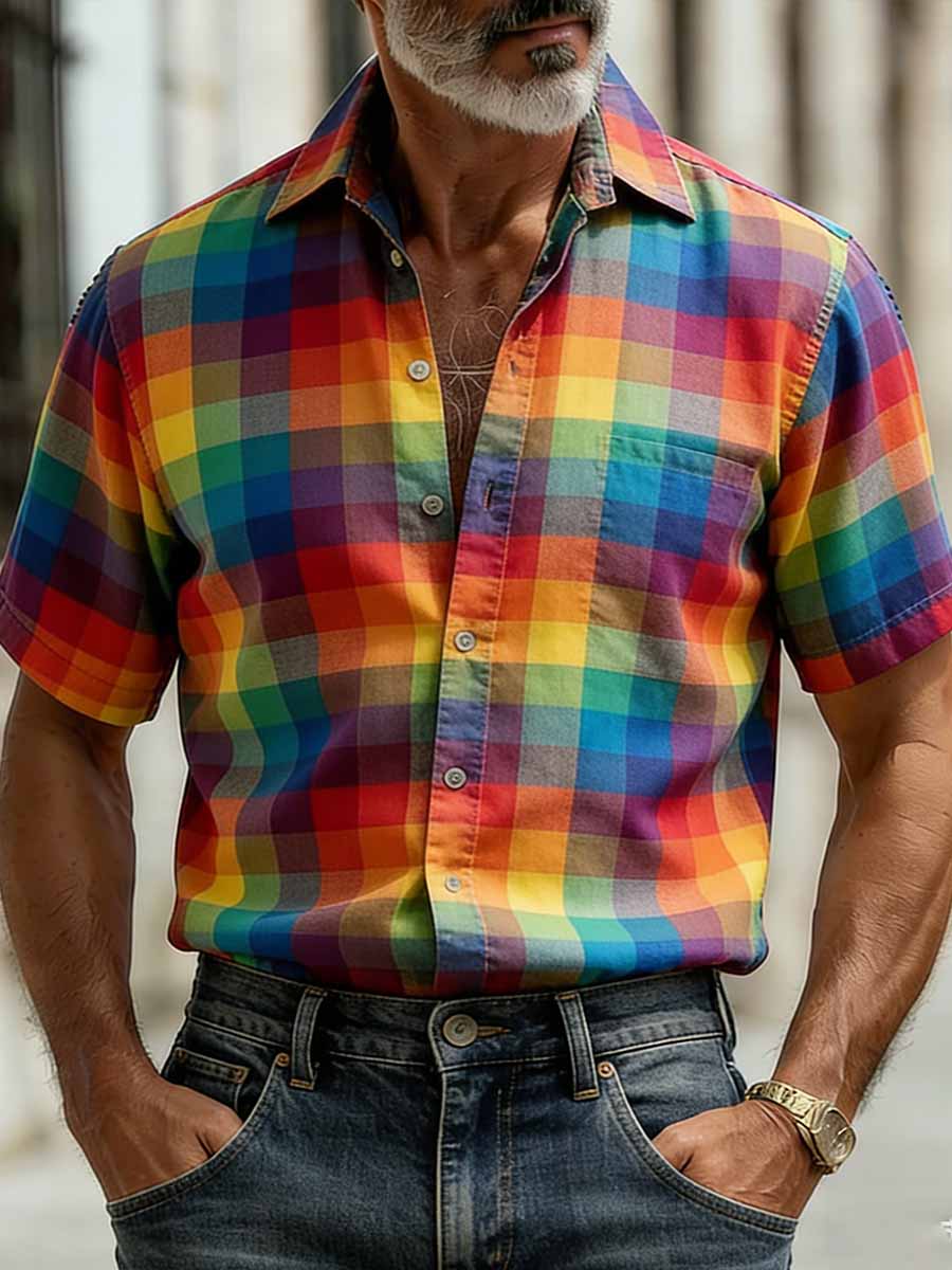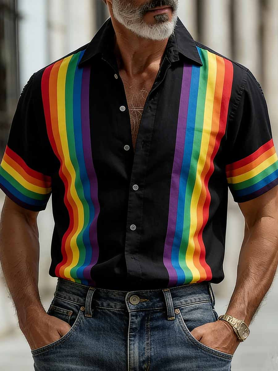 Men's Retro Pride Month Rainbow Pattern Printed T-Shirt