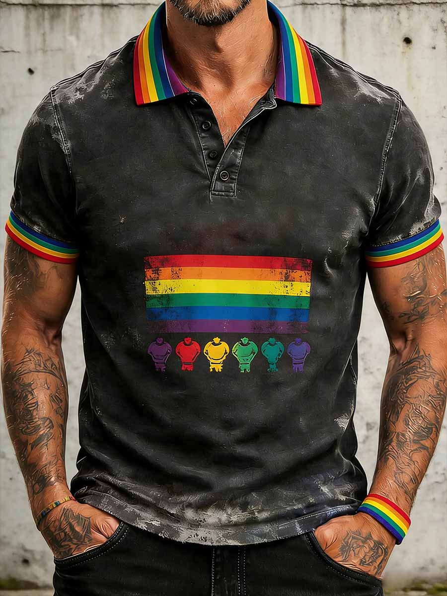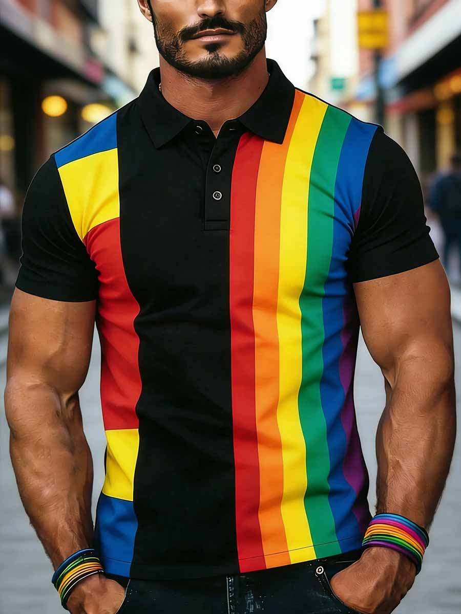 Men's Vintage Rainbow Pattern Printed Polo Shirt