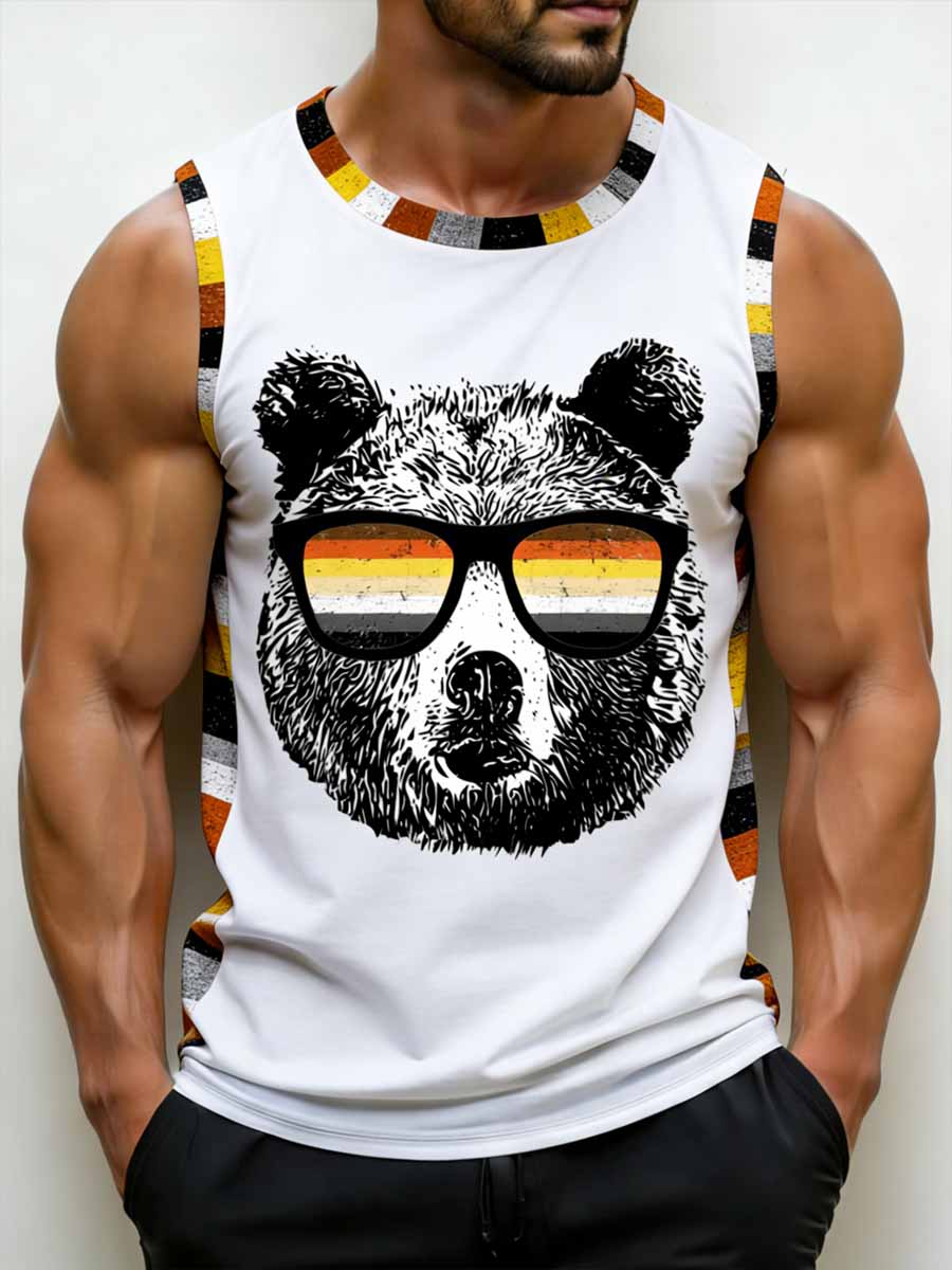 Men's Retro Pride Month Bear Graphic Print Tank Top