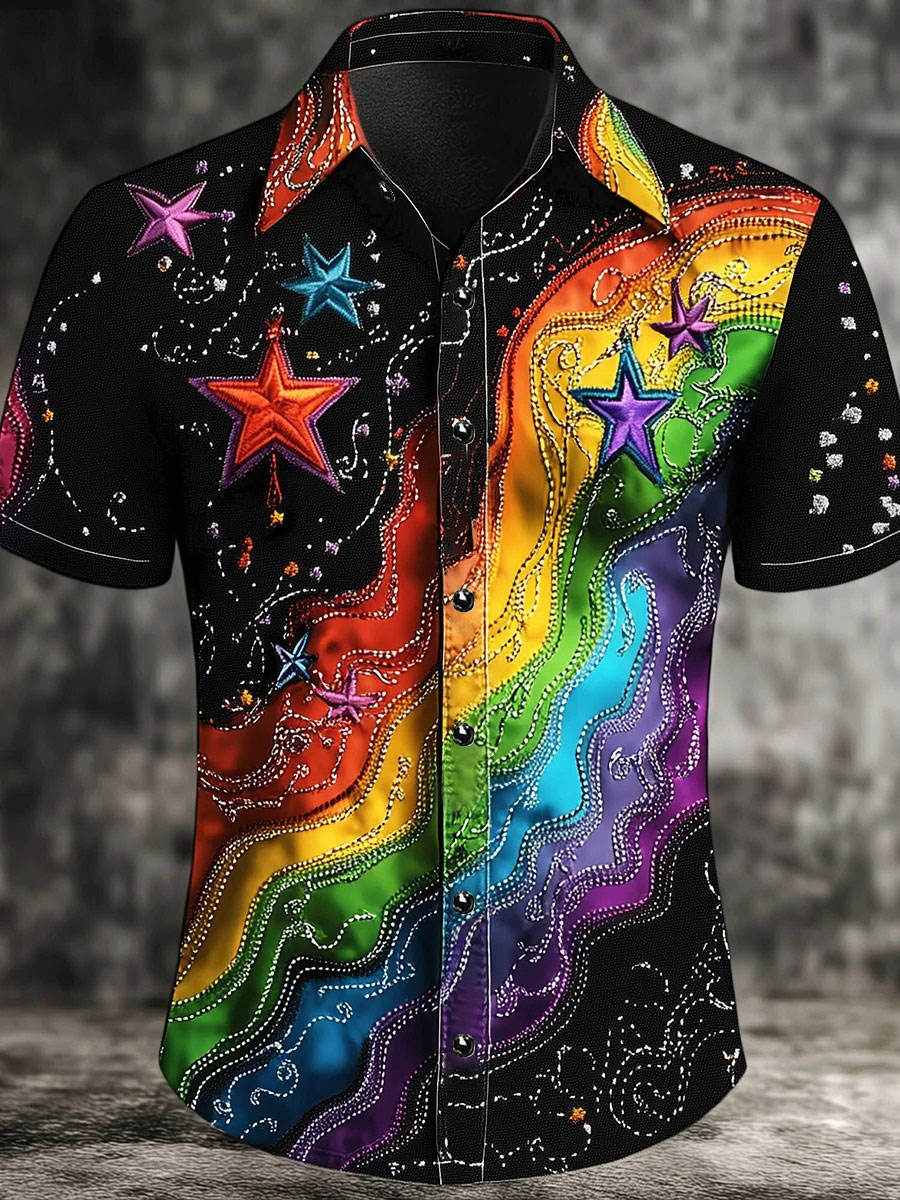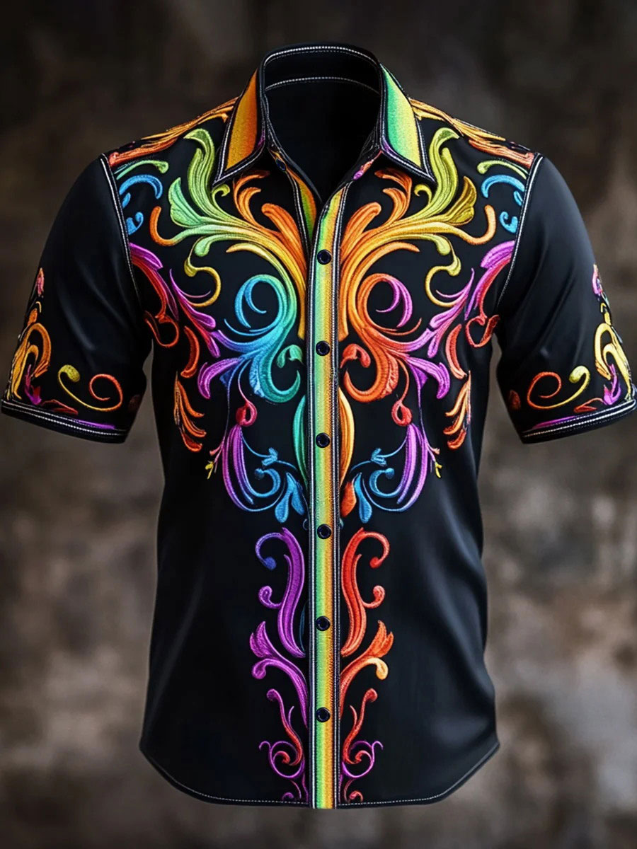 Men's Rainbow Gradient Baroque Art Print Casual Shirt