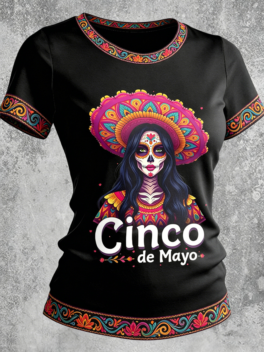 Cinco de Mayo Printed Vintage Fashion Loose Short Sleeve T-Shirt