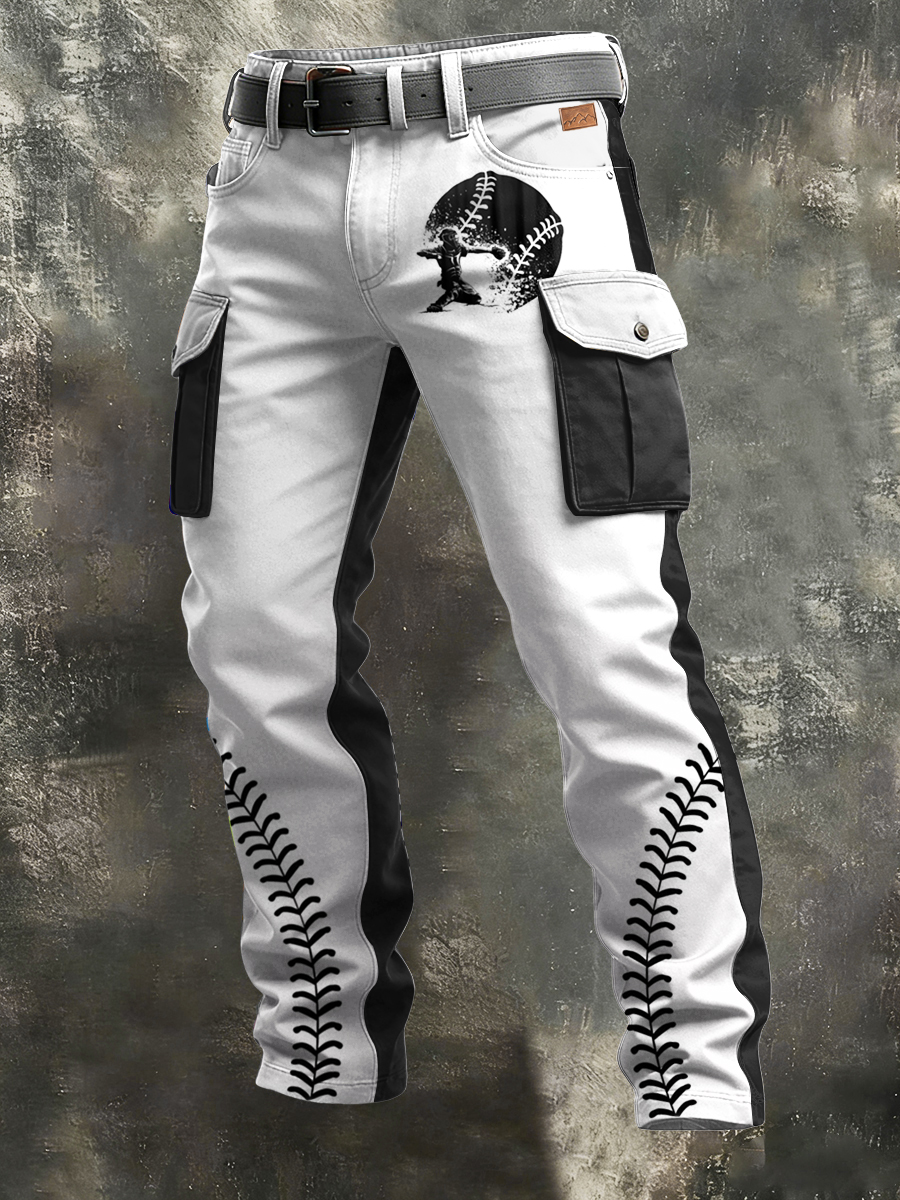 Men's Retro Vacation Business Art Print Casual Workwear Trousers
