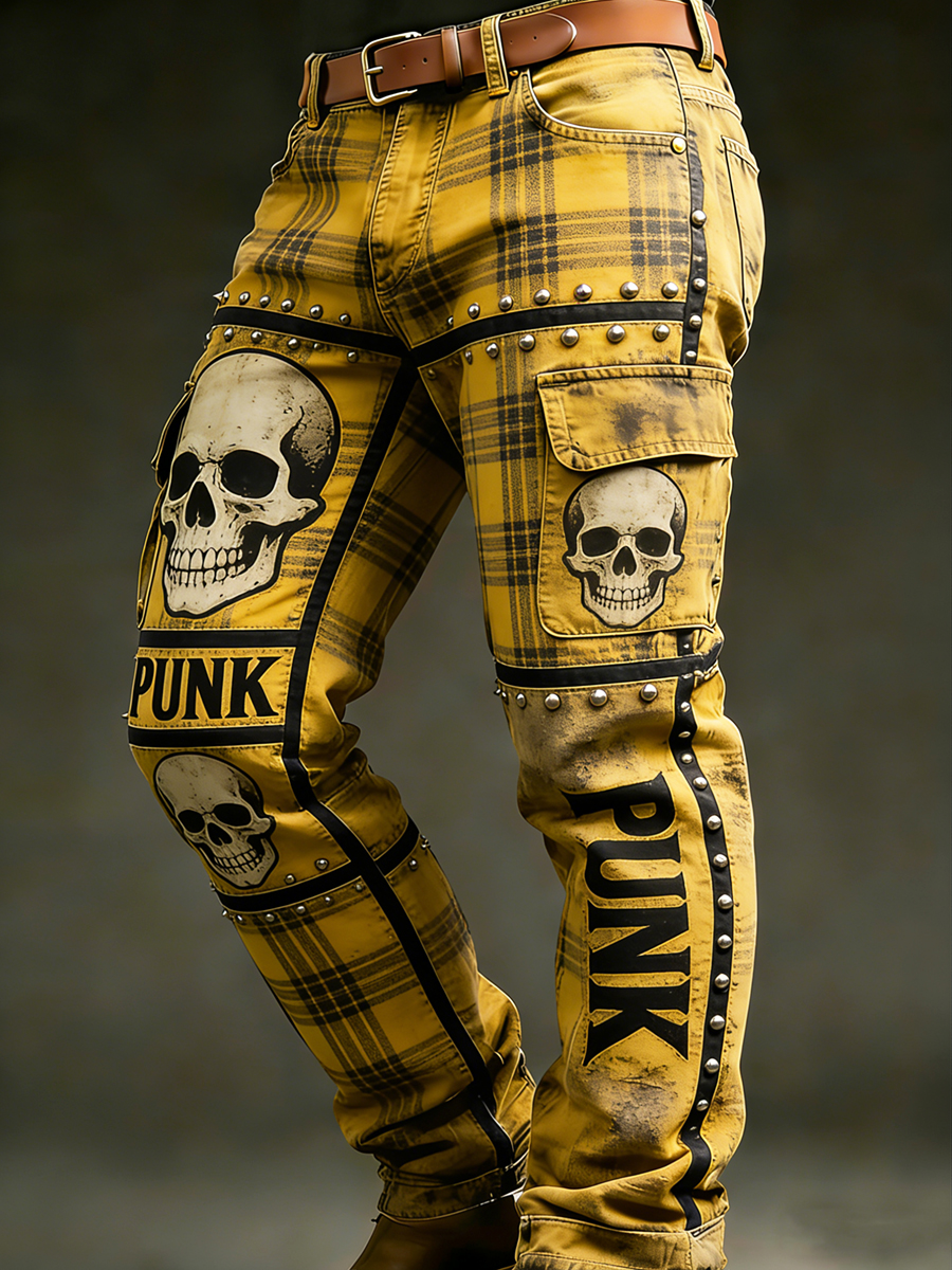 Men's Retro Vacation Business Punk Art Print Casual Workwear Trousers