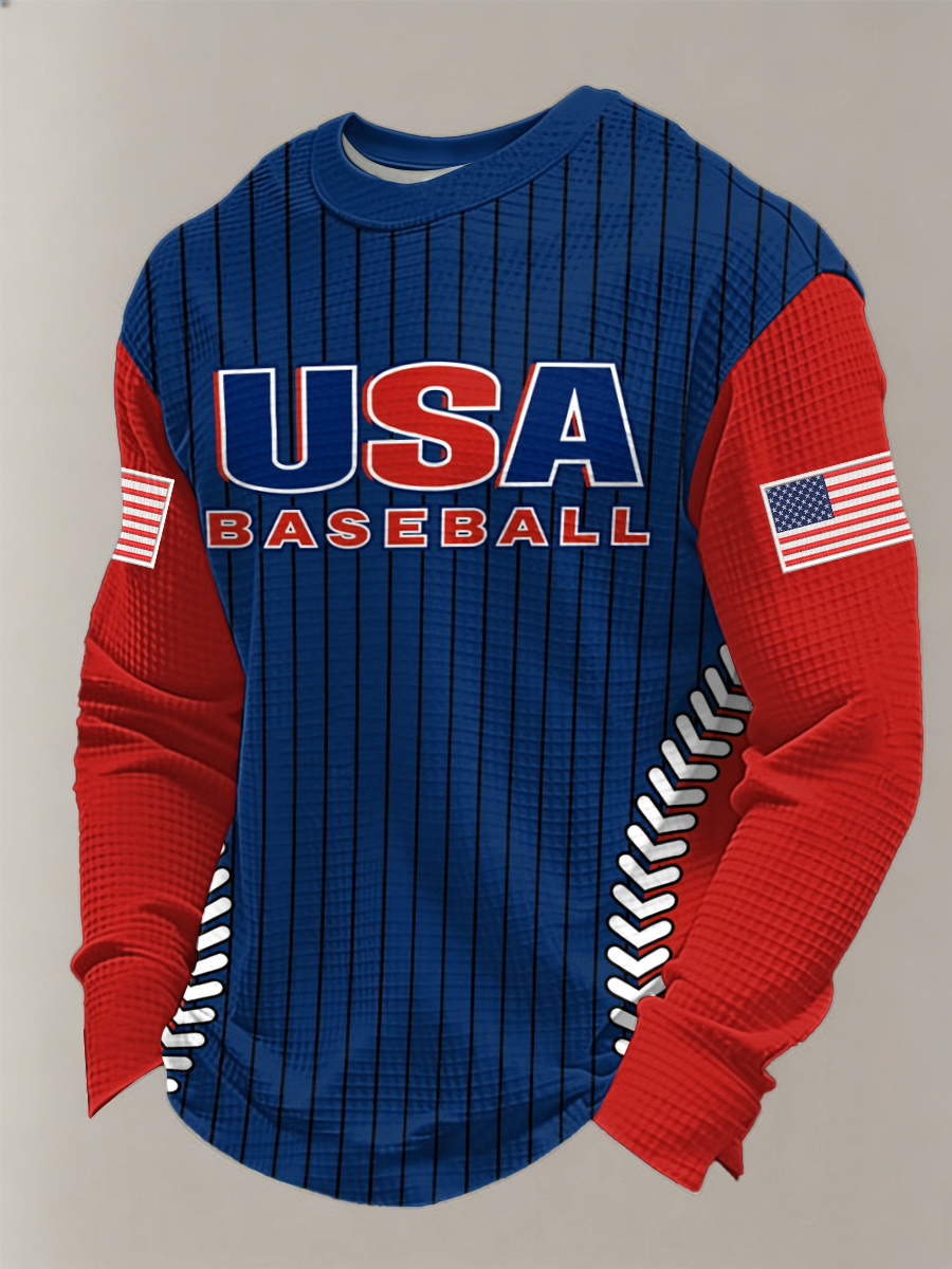 Men's USA Baseball Print Casual Waffle Long Sleeve T-Shirt