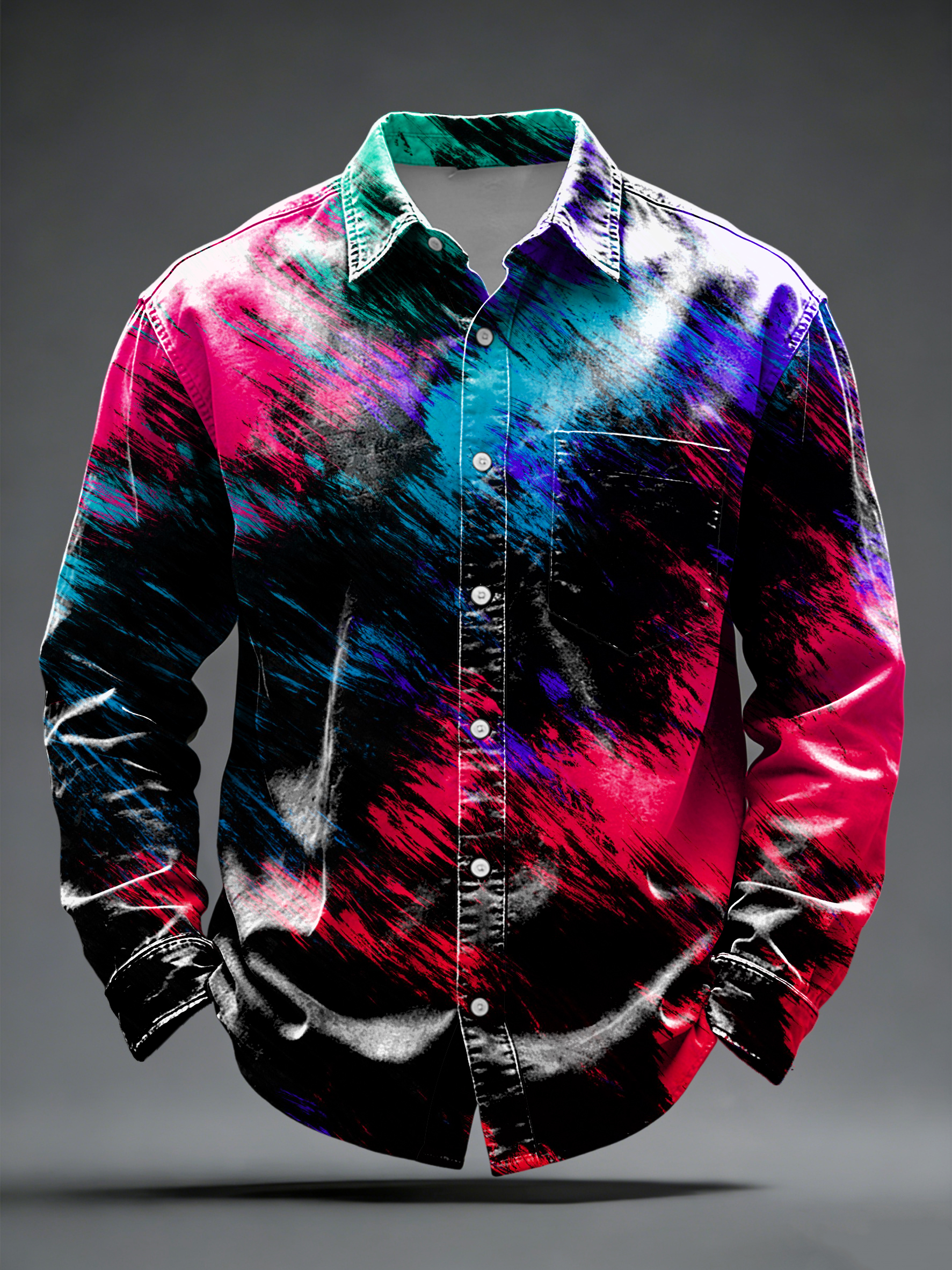 Men's Vibrant Pink-Blue Abstract Brushstroke Button-Down Shirt