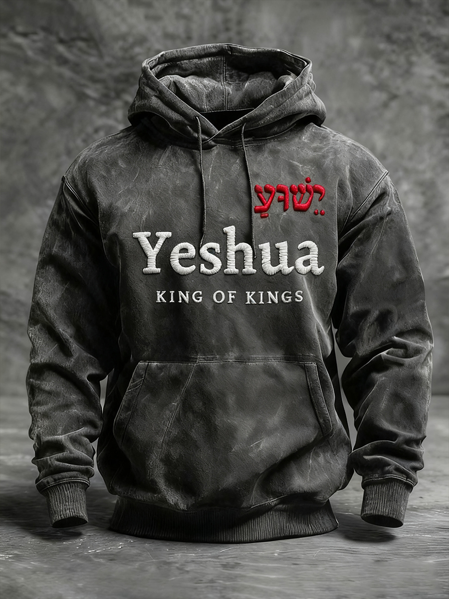 Men's Vintage Yeshua King Of Kings Oversized Drop-Shoulder Hoodie with Pockets
