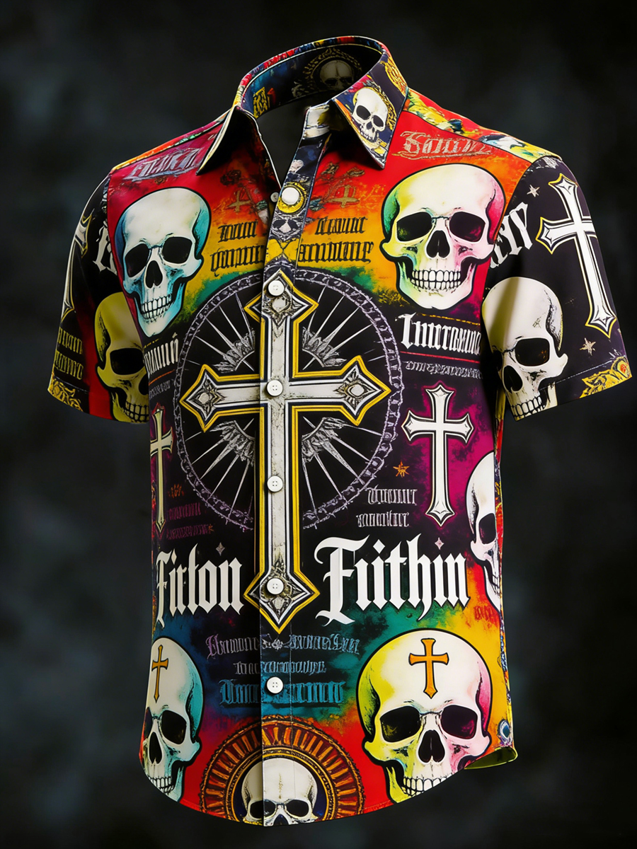 Men's Belief Skull Print Casual Short Sleeved Shirt