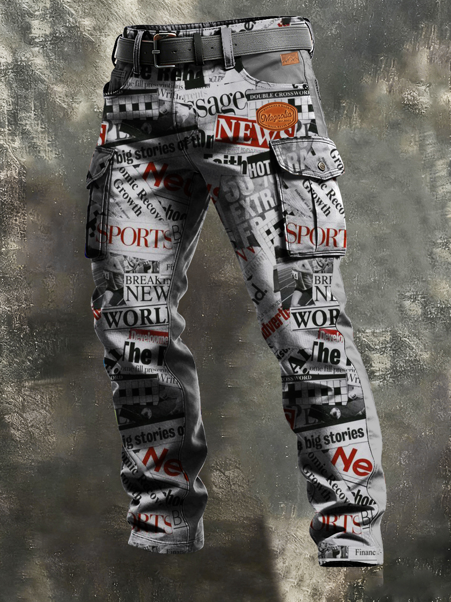 Men's Business-Style Newspaper Print Retro Art Casual Workwear Trousers