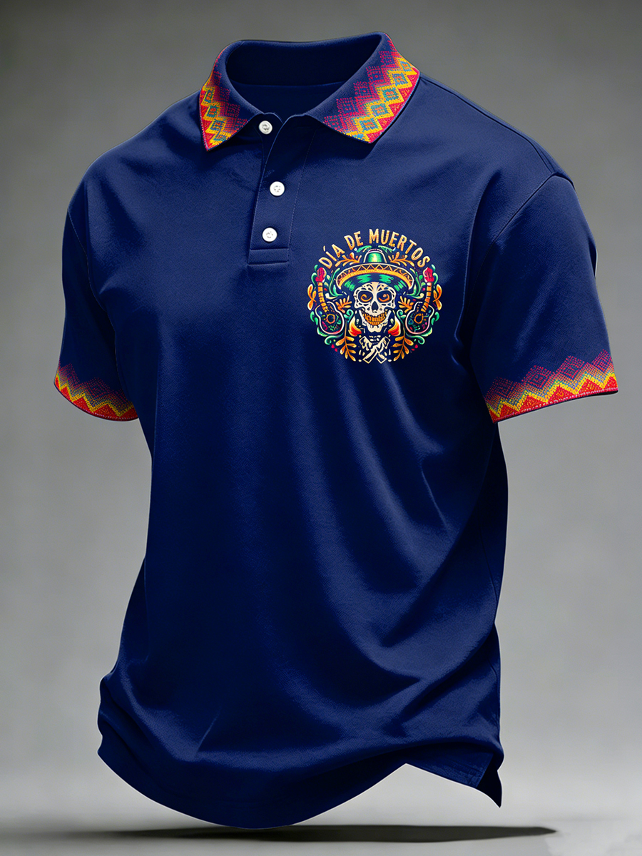 Men's Cinco de Mayo Print Polo Collar Casual Short Sleeved Shirt