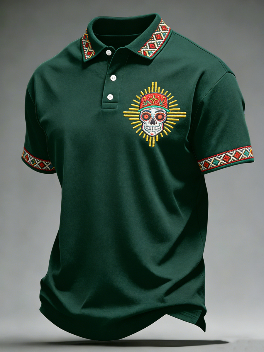 Men's Cinco de Mayo Print Polo Collar Casual Short Sleeved Shirt