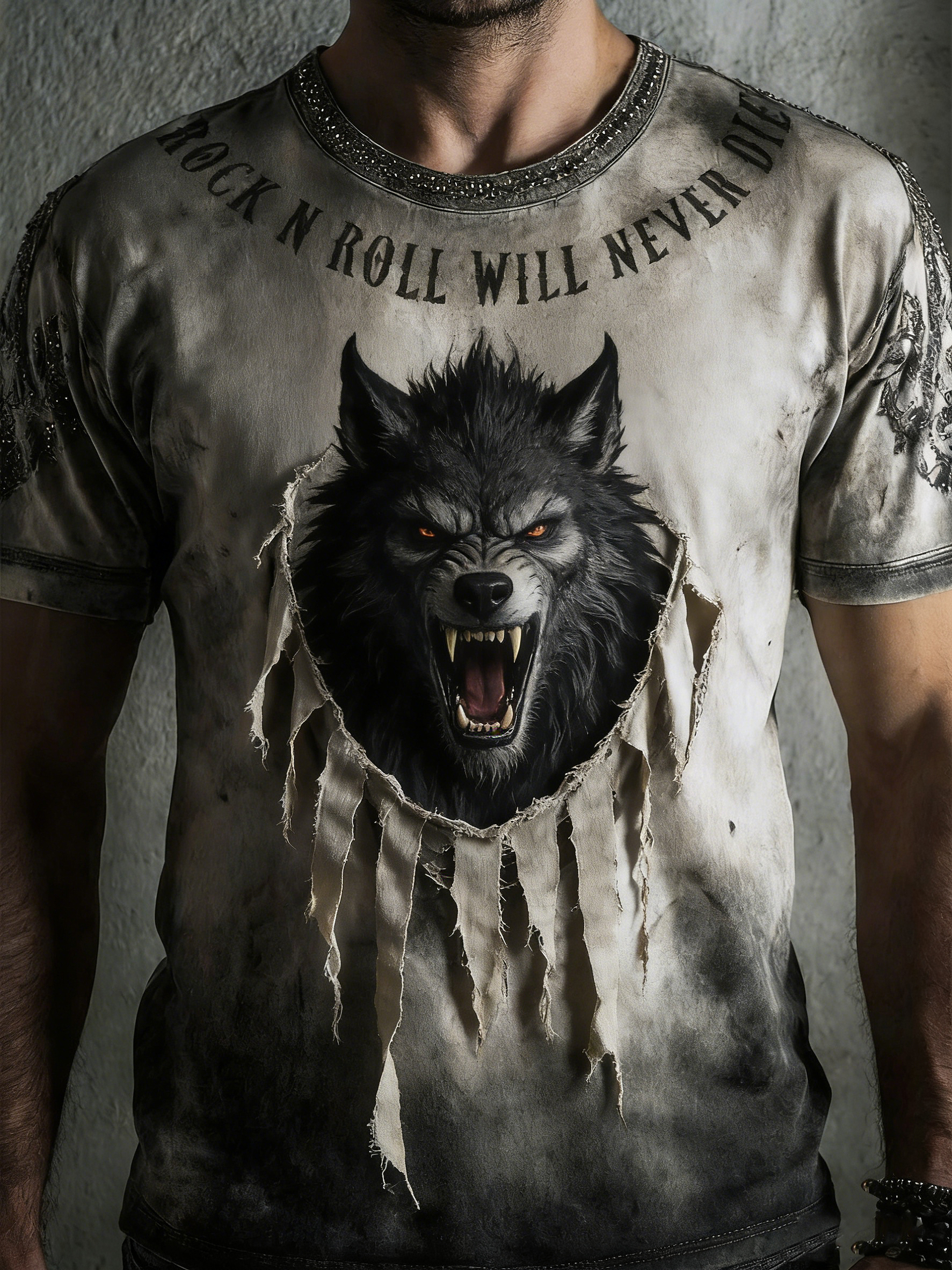 Men's Dark Gothic Animal Printed Vintage Fashion Loose Short Sleeve T-Shirt
