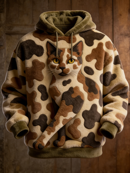 Men's Funny Cats Camouflage Art Print Flannel Hoodie