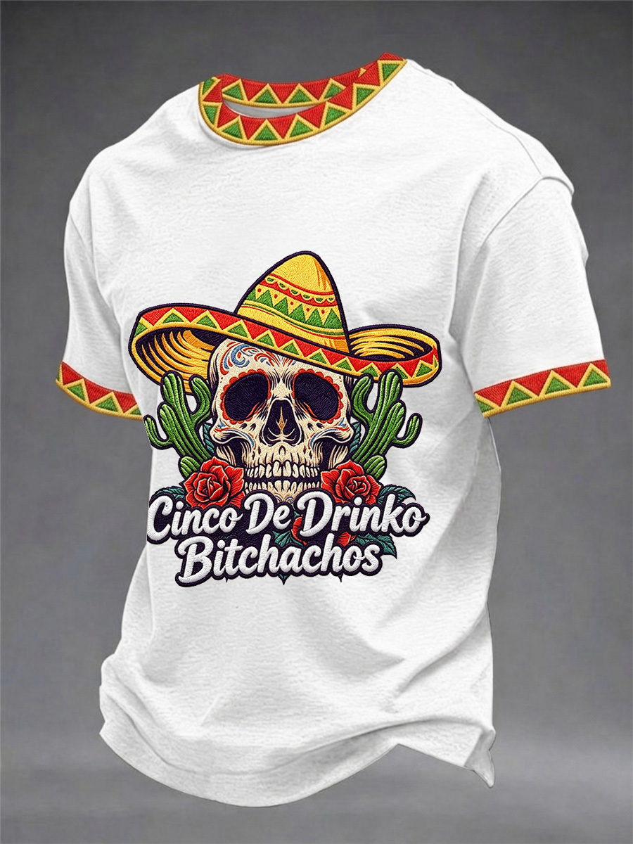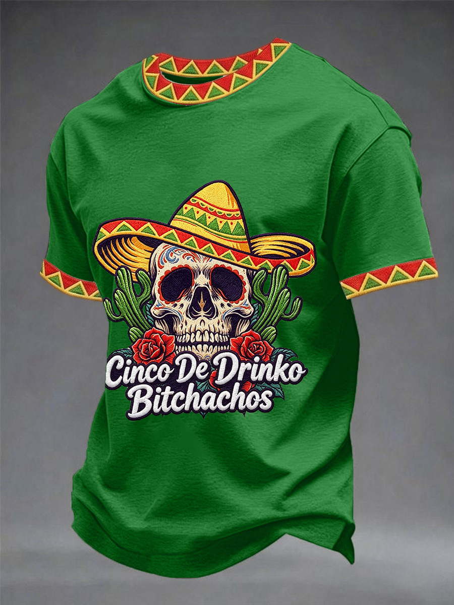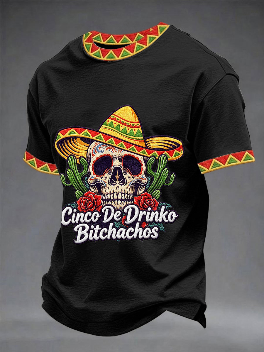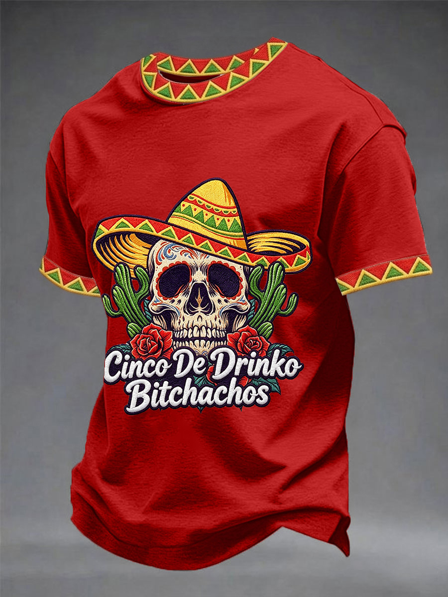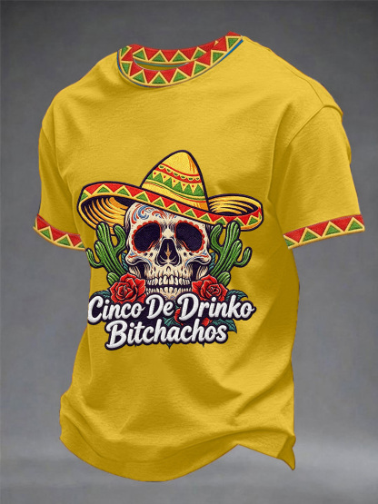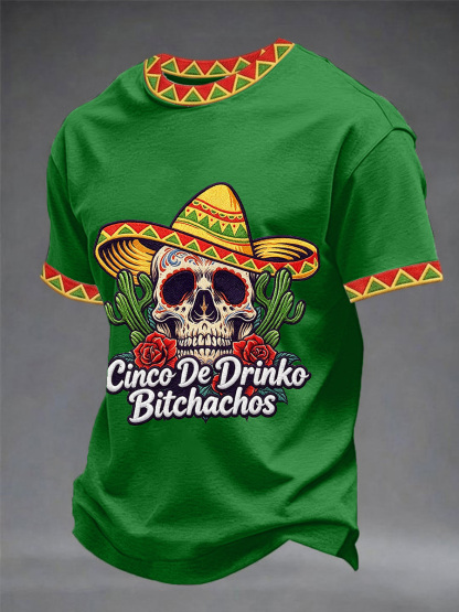 Men's Funny Cinco De Drinko Bitchachos Skull Print Tee