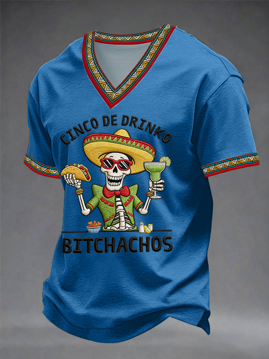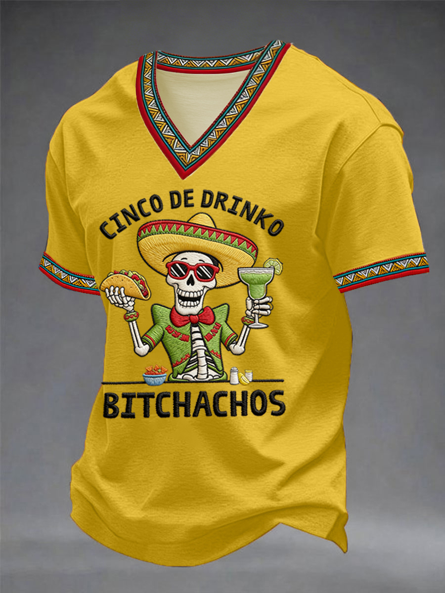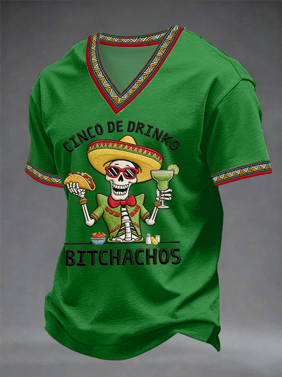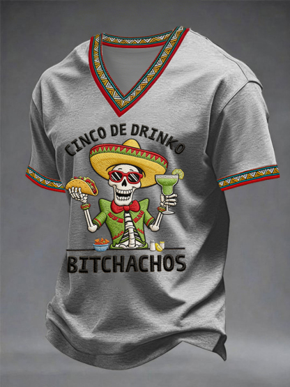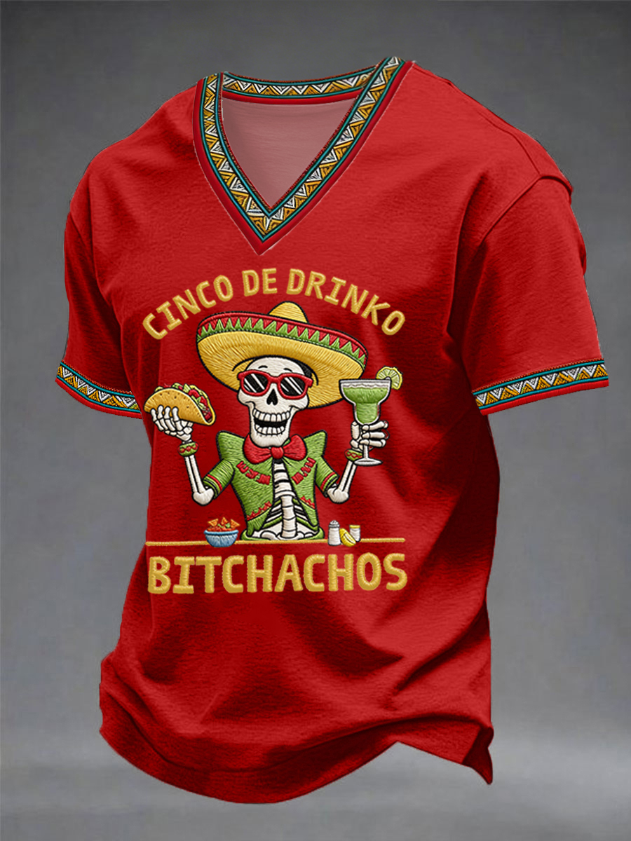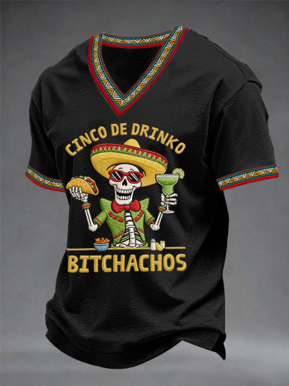 Men's Funny Cinco De Mayo Bitchachos Skull Print V-neck Tee