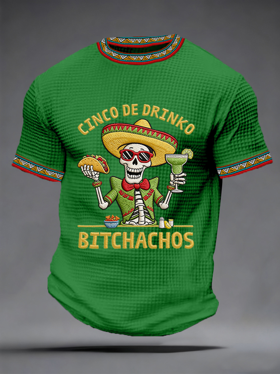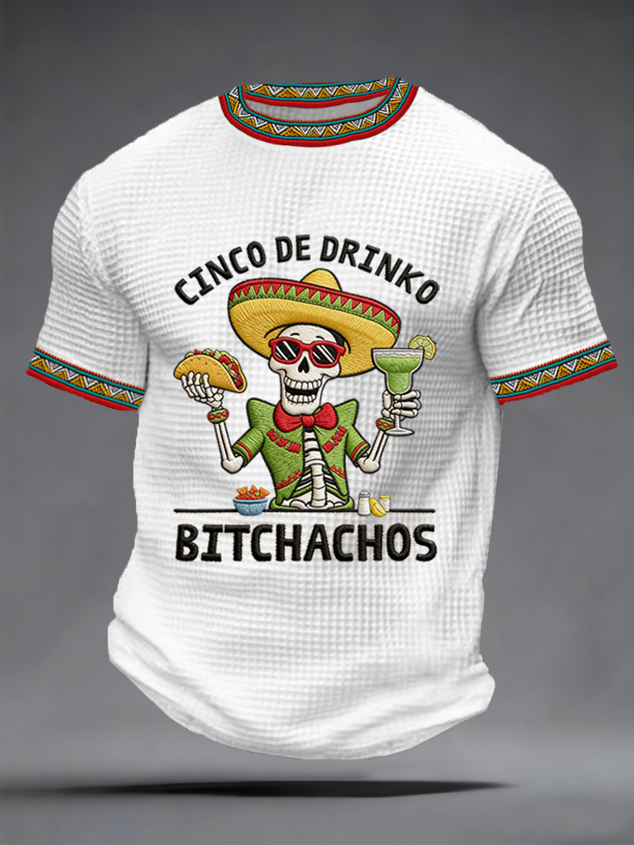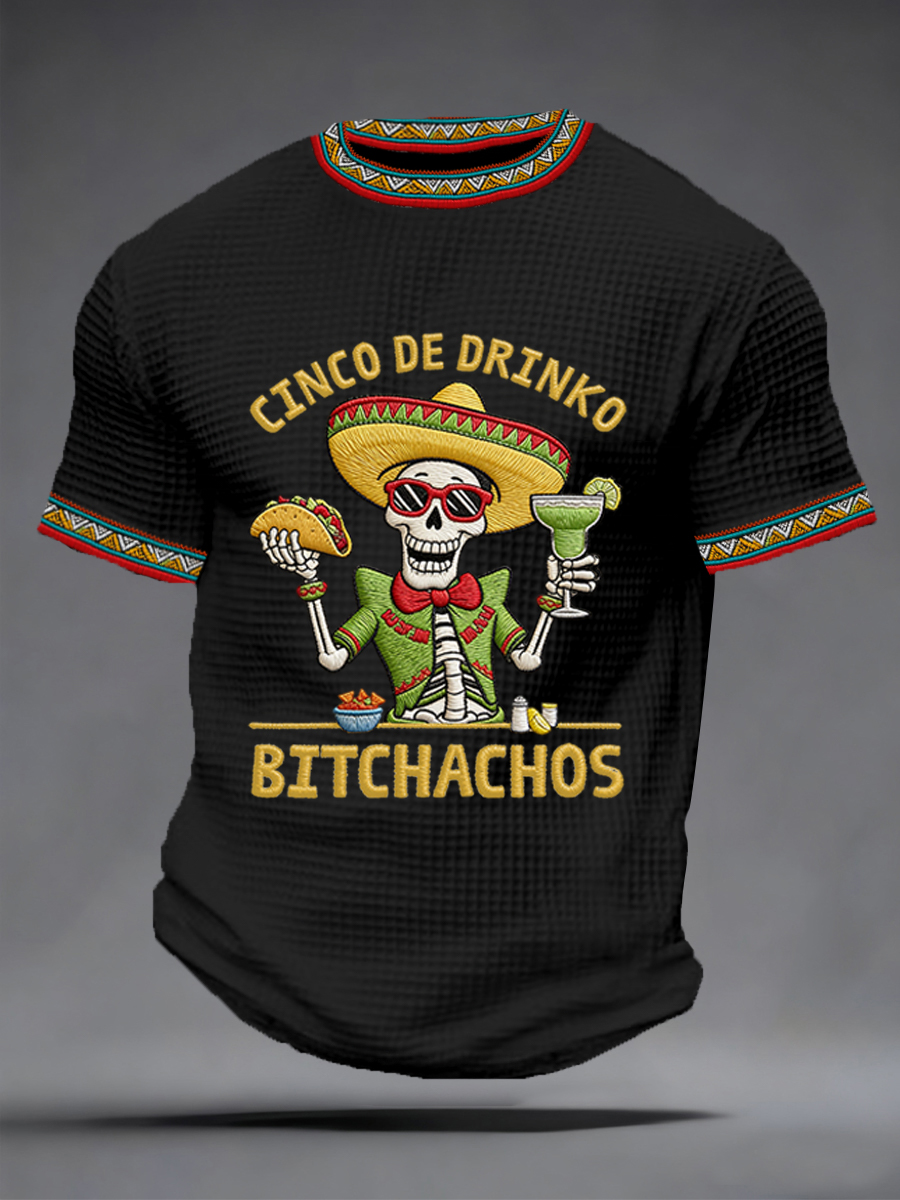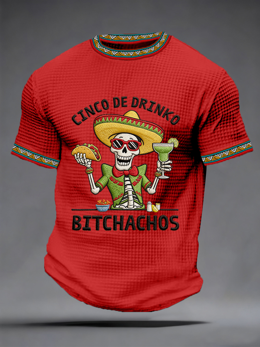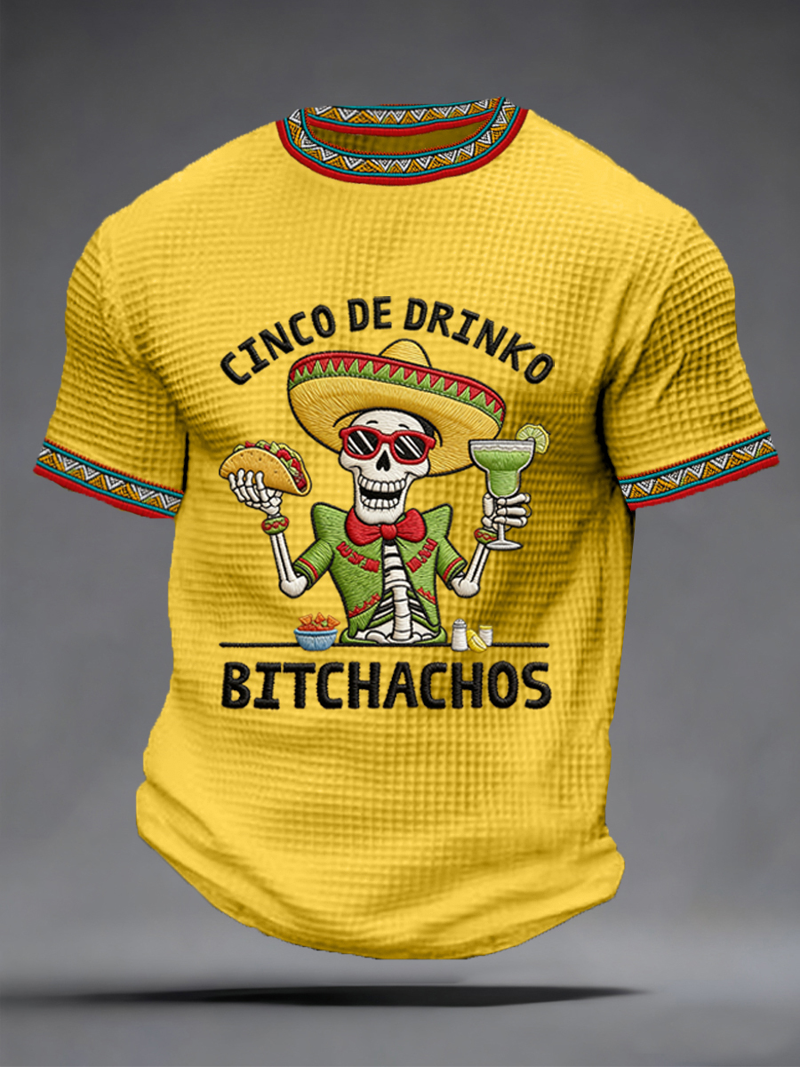 Men's Funny Cinco De Mayo Bitchachos Skull Print Waffle Tee