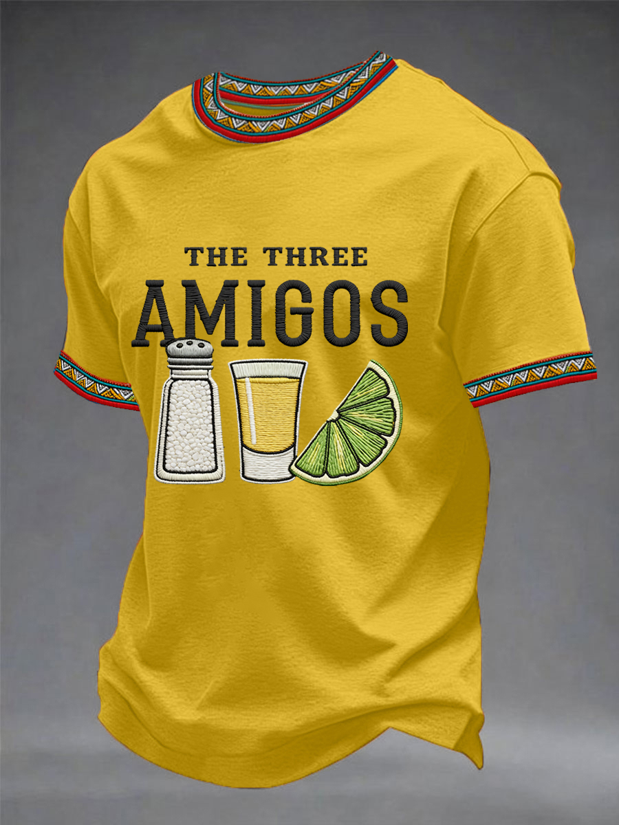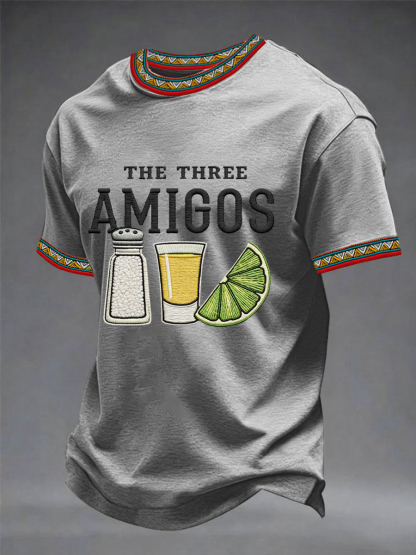 Men's Funny Cinco de Mayo The Three Amigos Salt Tequila Lemon Print Casual Tee