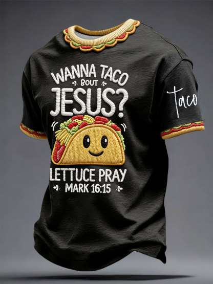 Men's Funny Wanna Taco Bout Jesus Cinco De Mayo Printed T-shirt