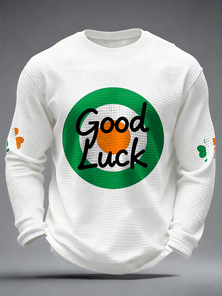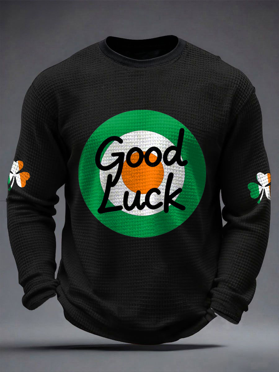Men's Good Luck St.Partrick's Day Irish Mods Music Lover Printed Waffle Tops