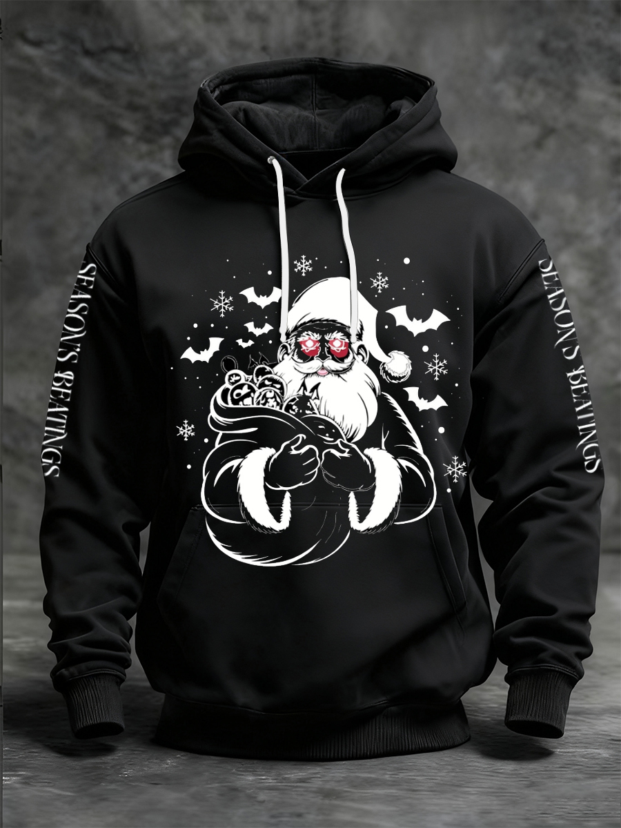 Men's Gothic Christmas Printed Long Sleeved Hooded Sweatshirt