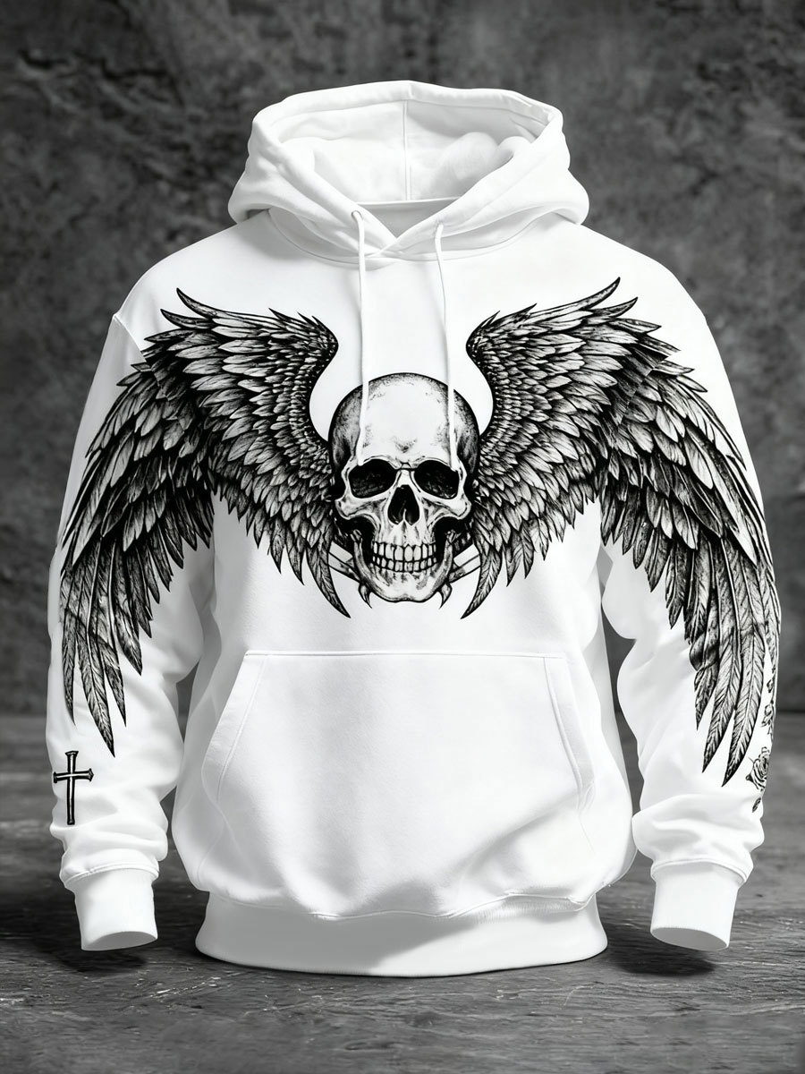 Men's Gothic Skull Oversized Drop-Shoulder Hoodie with Pockets