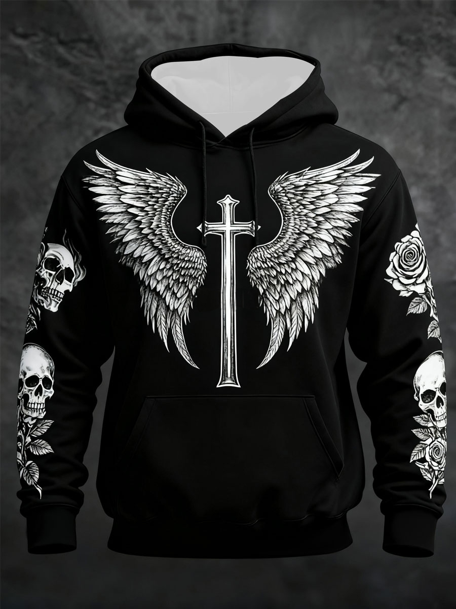 Men's Gothic Skull Oversized Drop-Shoulder Hoodie with Pockets