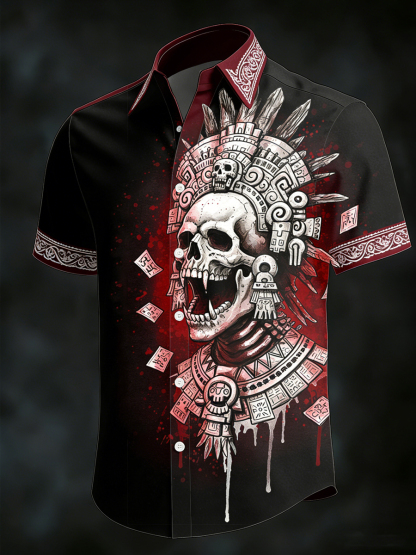 Men's Gothic Skull Print Casual Short Sleeved Shirt