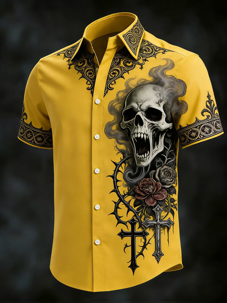 Men's Gothic Skull Print Casual Short Sleeved Shirt