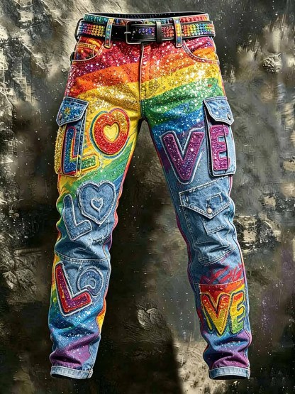 Men's Pride Month Rainbow Art Style Work Pants