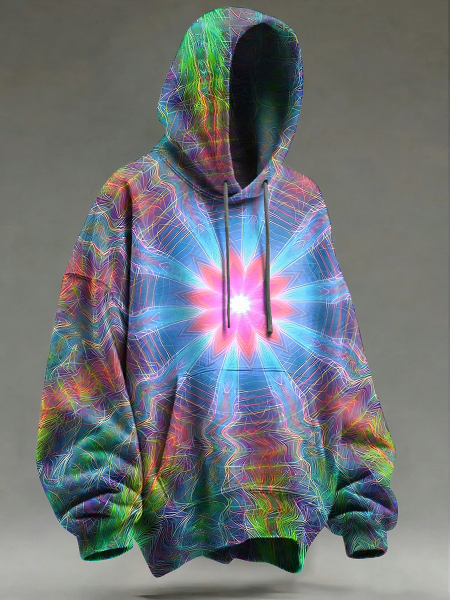 Men's Psychedelic Print Long Sleeved Hooded Sweatshirt