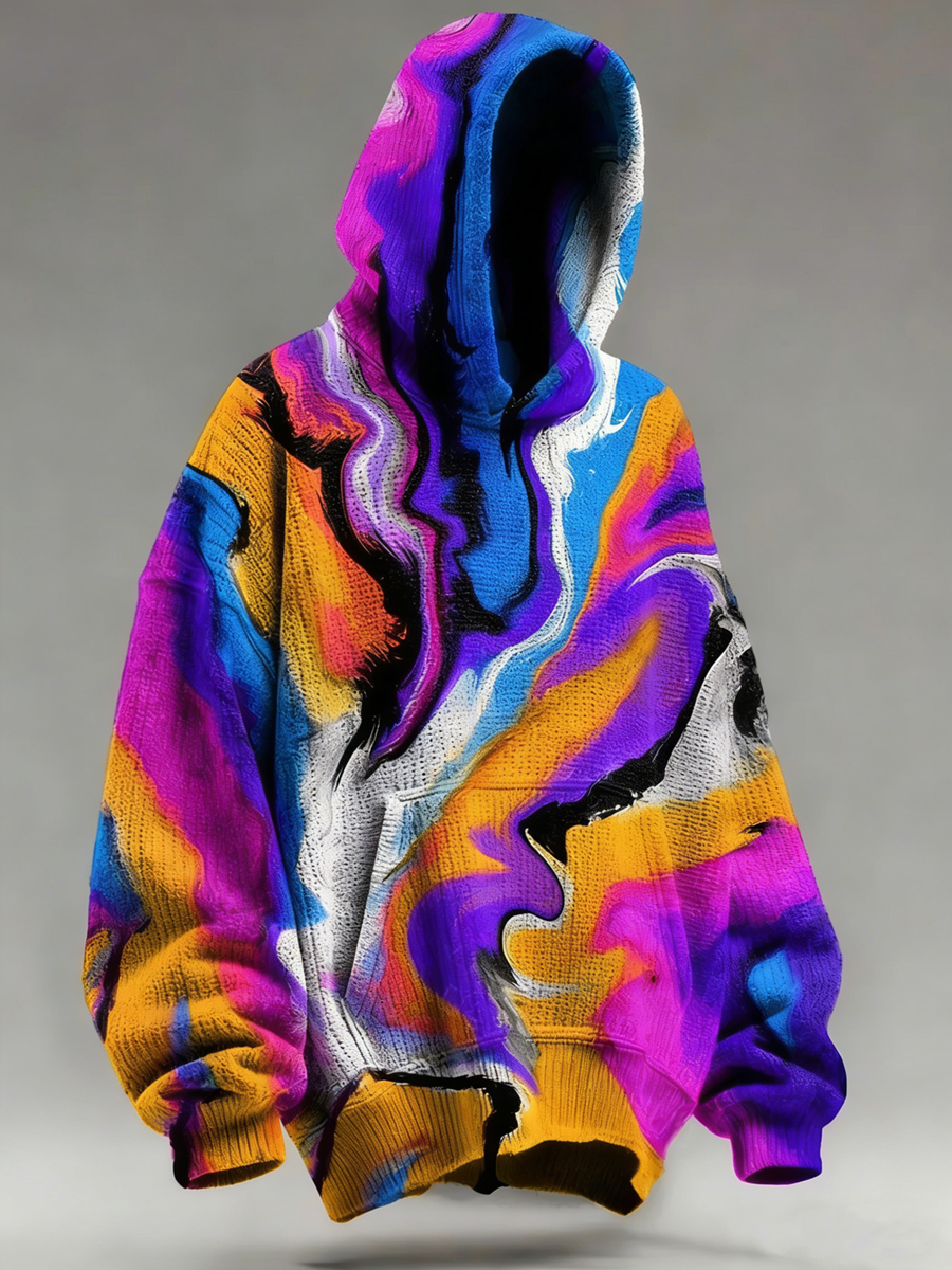 Men's Psychedelic Print Long Sleeved Hooded Sweatshirt