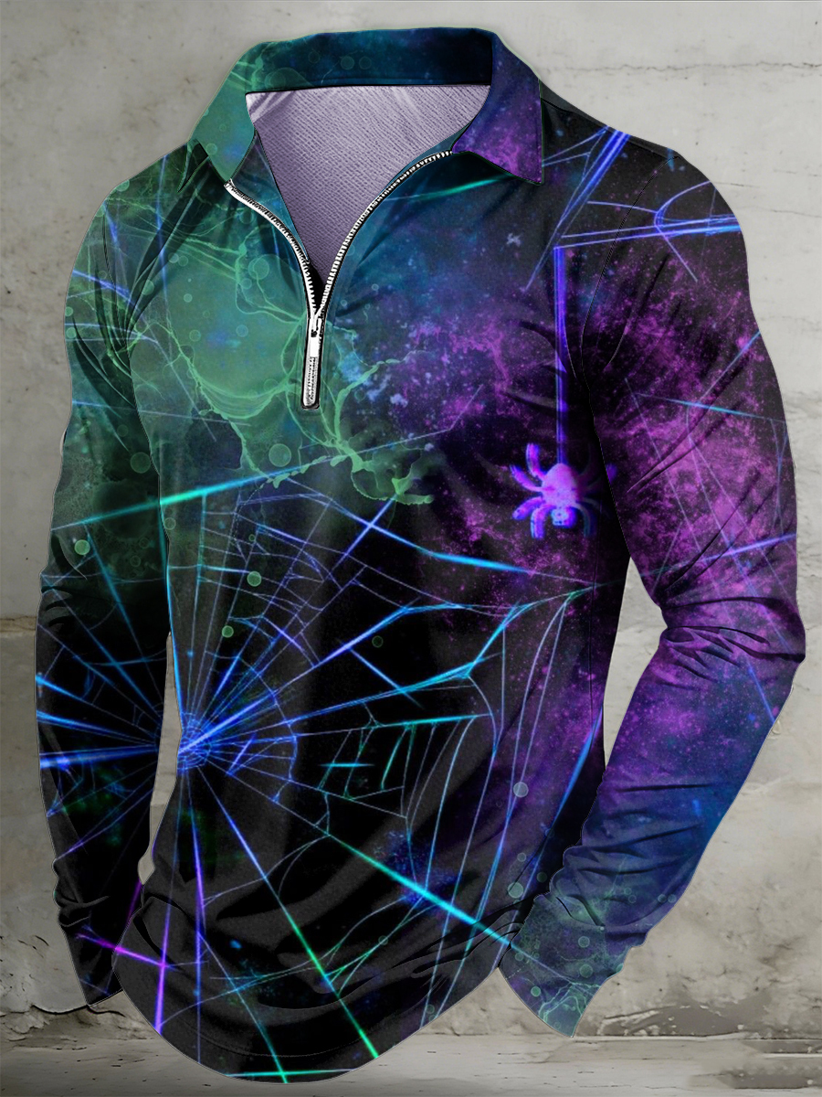 Men's Psychedelic Printed Half Zipper Lapel Long Sleeved Polo