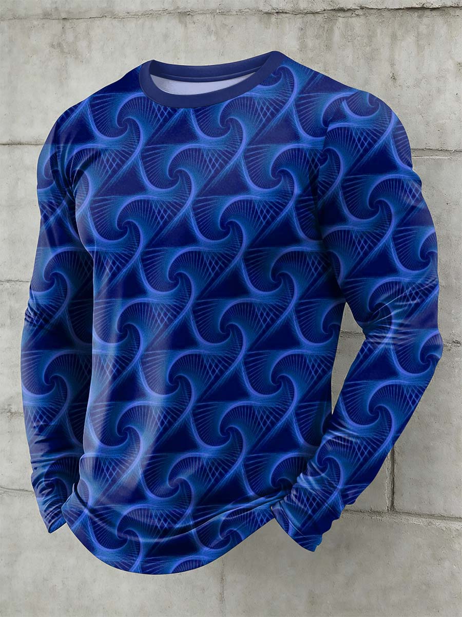 Men's Psychedelic Printed Long Sleeved Round Neck T-shirt