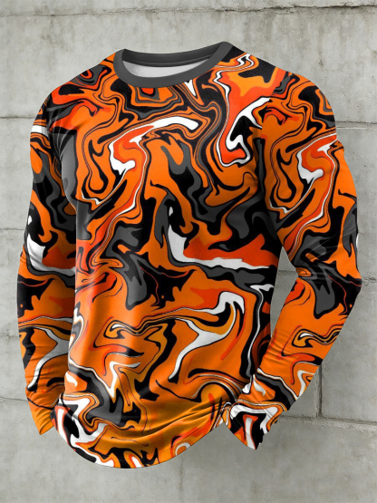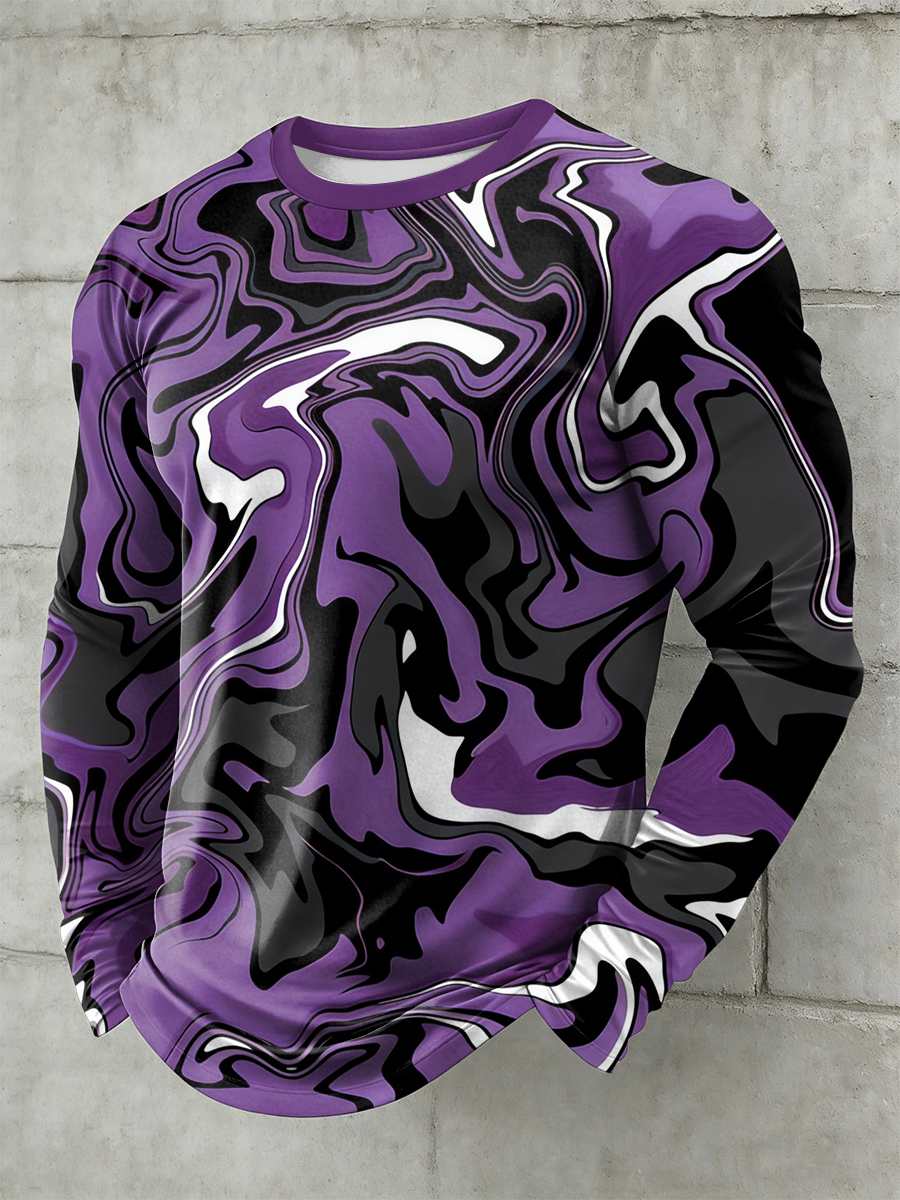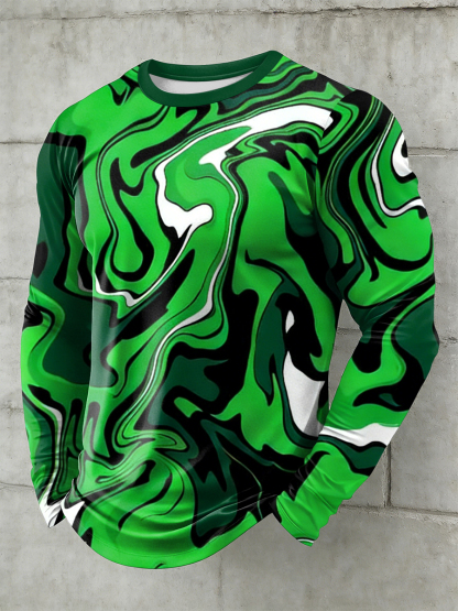 Men's Psychedelic Printed Long Sleeved Round Neck T-shirt