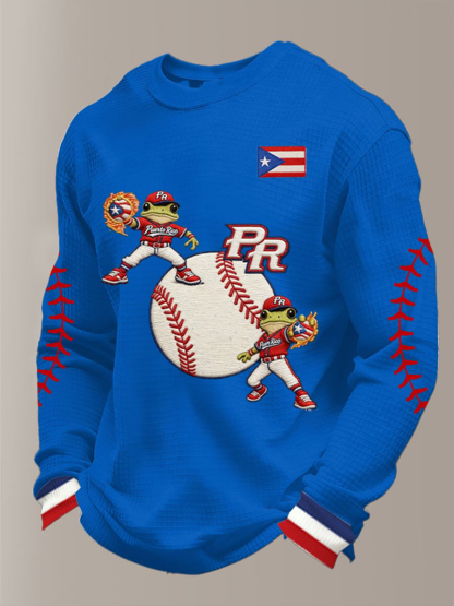 Men's Puerto Rico Baseball Waffle Long Sleeve Sweatshirt