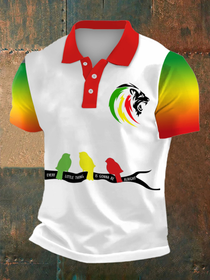 Men's Reggae Print Polo Collar Casual Short Sleeved Shirt