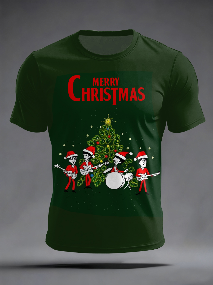 Men's Retro Classic Legendary Rock Band Merry Christmas Print Gift For Fans Casual Tee