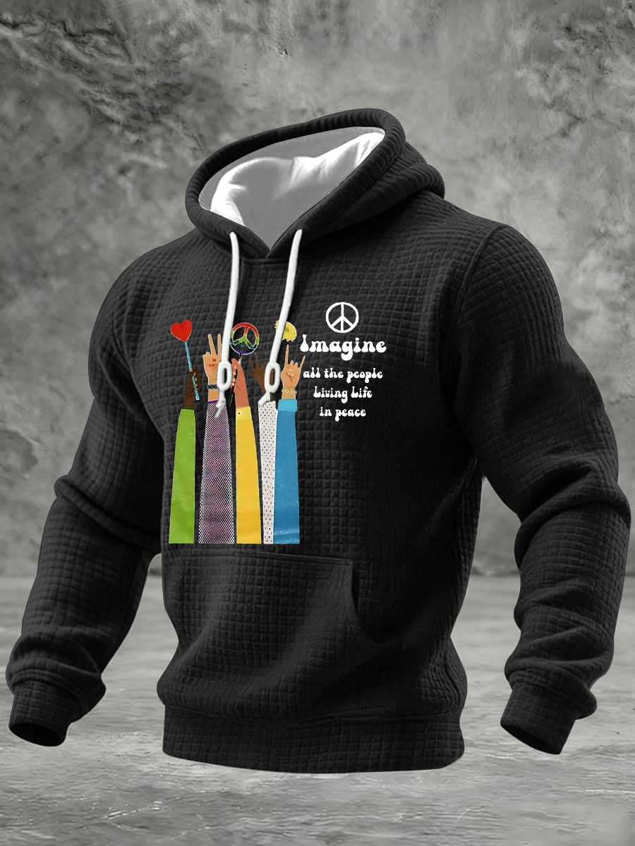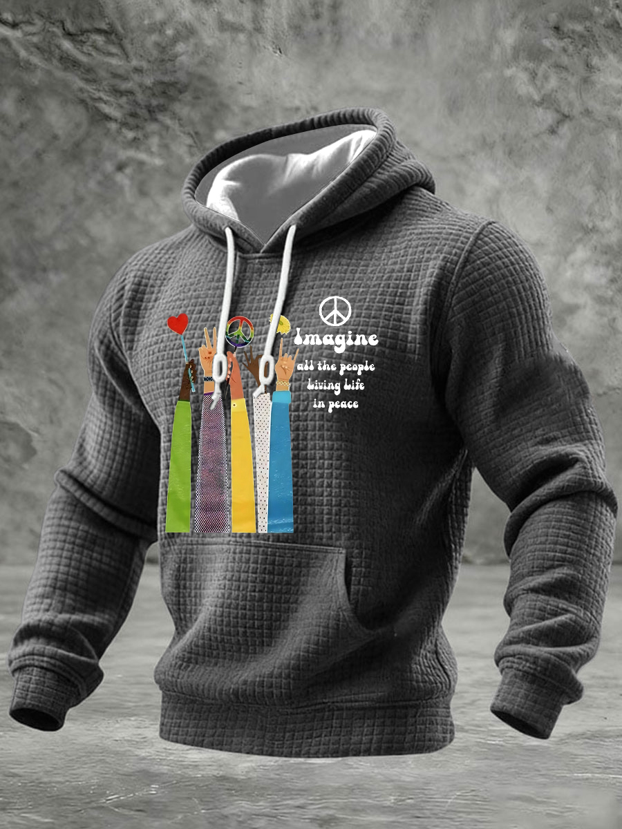 Men's Retro Classic Legendary Rock Band Print Gift For Fans Casual Checkered Cotton Hoodie
