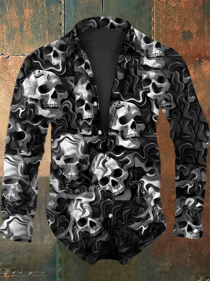 Men's Retro Halloween Party Shiny Mirrored Skull Abstract Print Casual Long Sleeve Shirt
