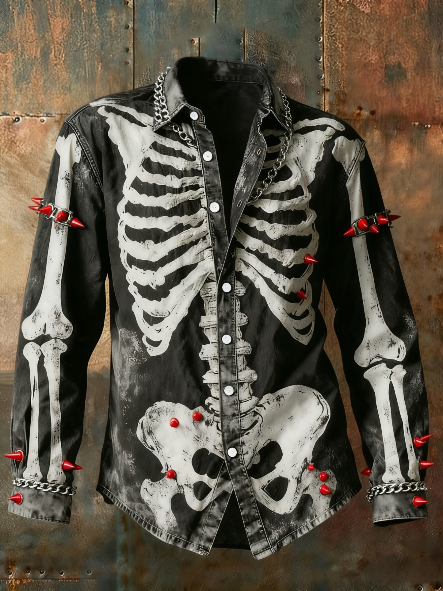 Men's Retro Halloween Skull Punk Skeleton Abstract Print Casual Long Sleeve Shirt