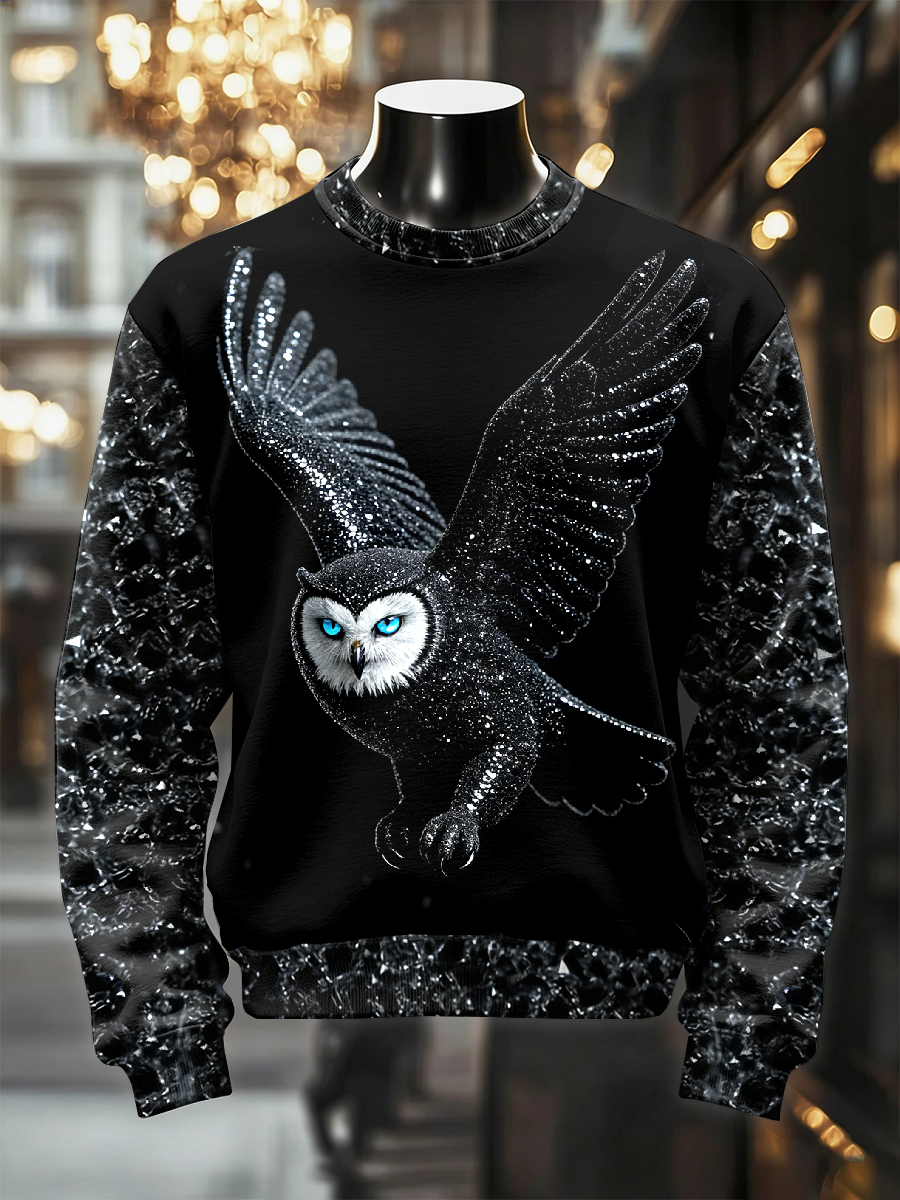 Men's Retro Luxurious Owl Print Casual Sweatshirt