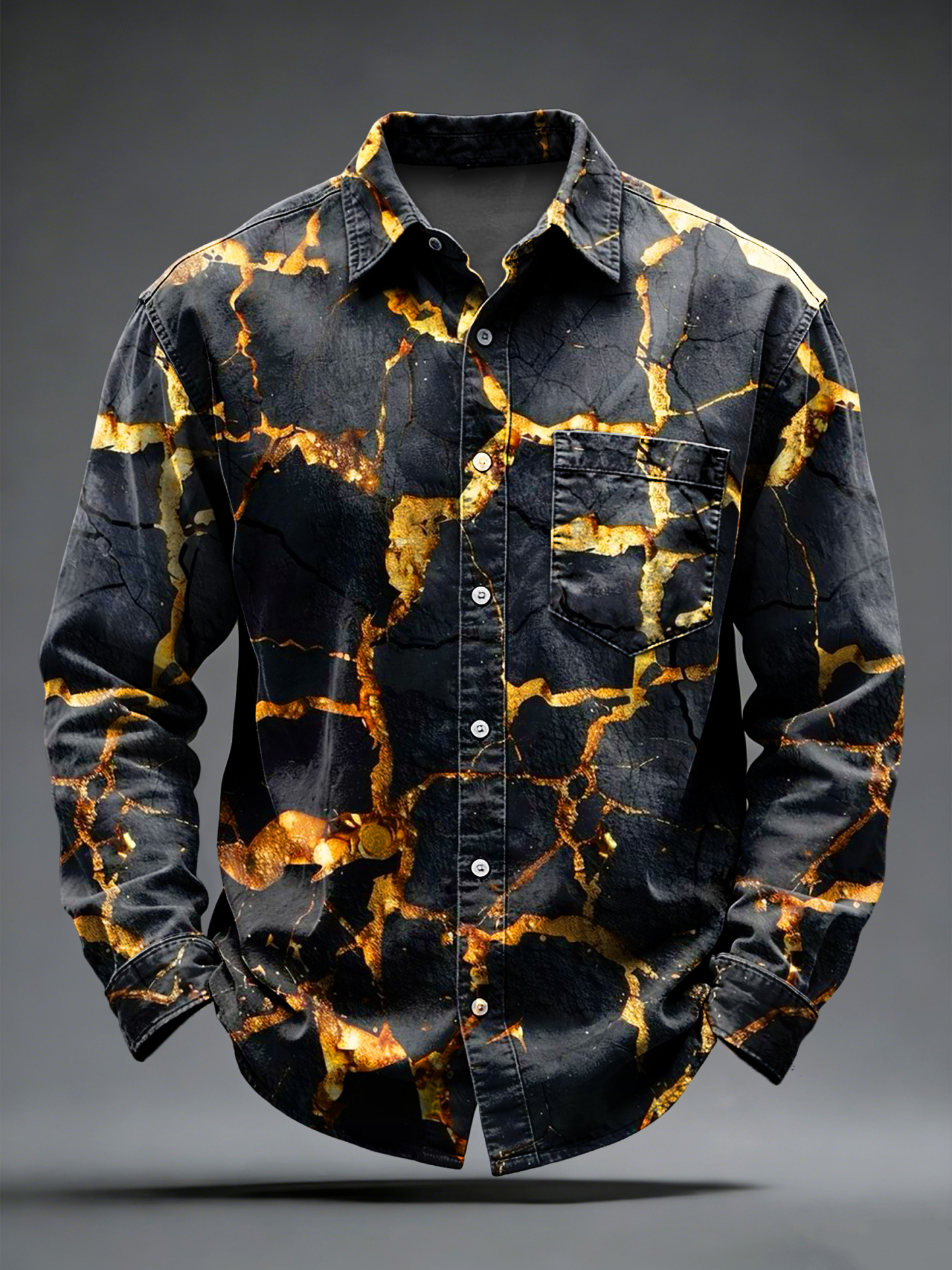 Men's Retro Psychedelic Printed Long Sleeved Pocket Shirt