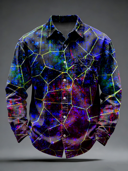 Men's Retro Psychedelic Printed Long Sleeved Pocket Shirt