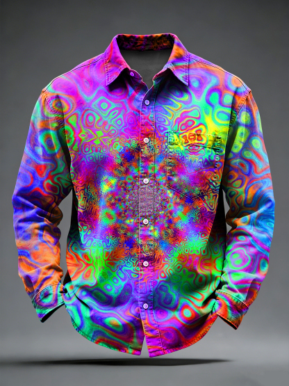 Men's Retro Psychedelic Printed Long Sleeved Pocket Shirt