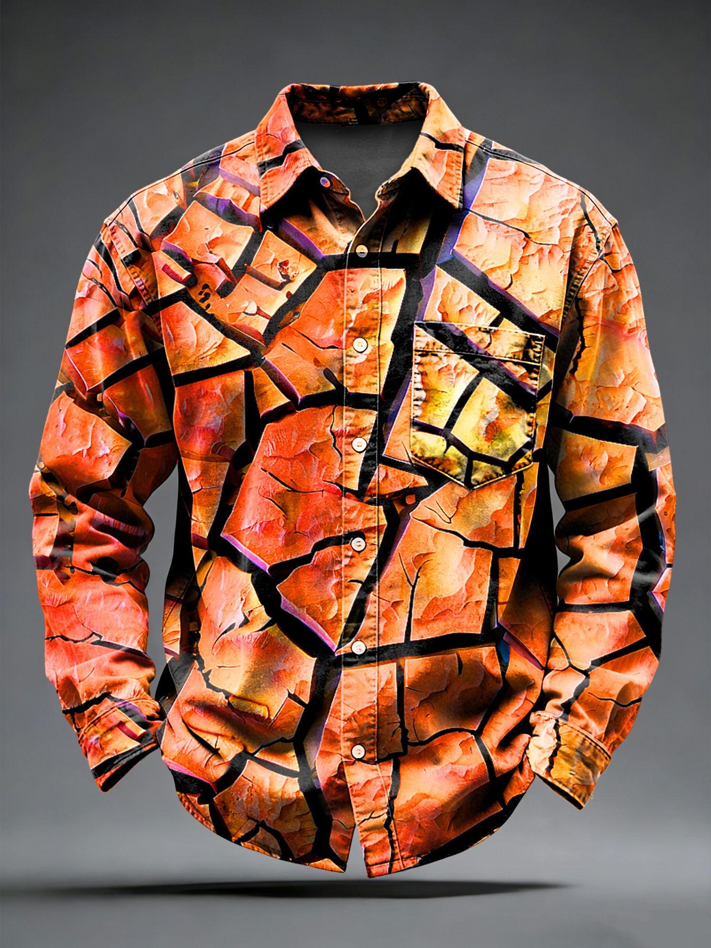 Men's Retro Psychedelic Printed Long Sleeved Pocket Shirt